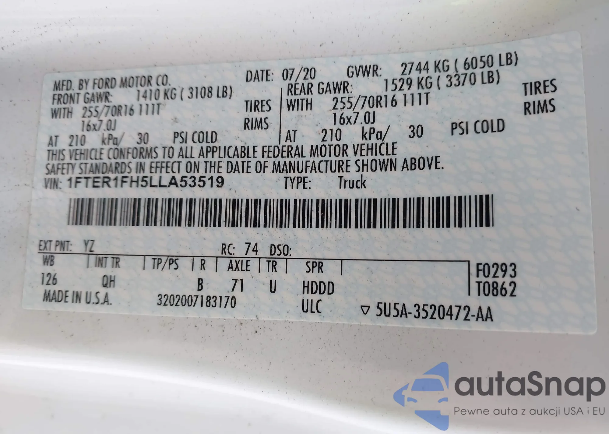 VIN: 1FTER1FH5LLA53519