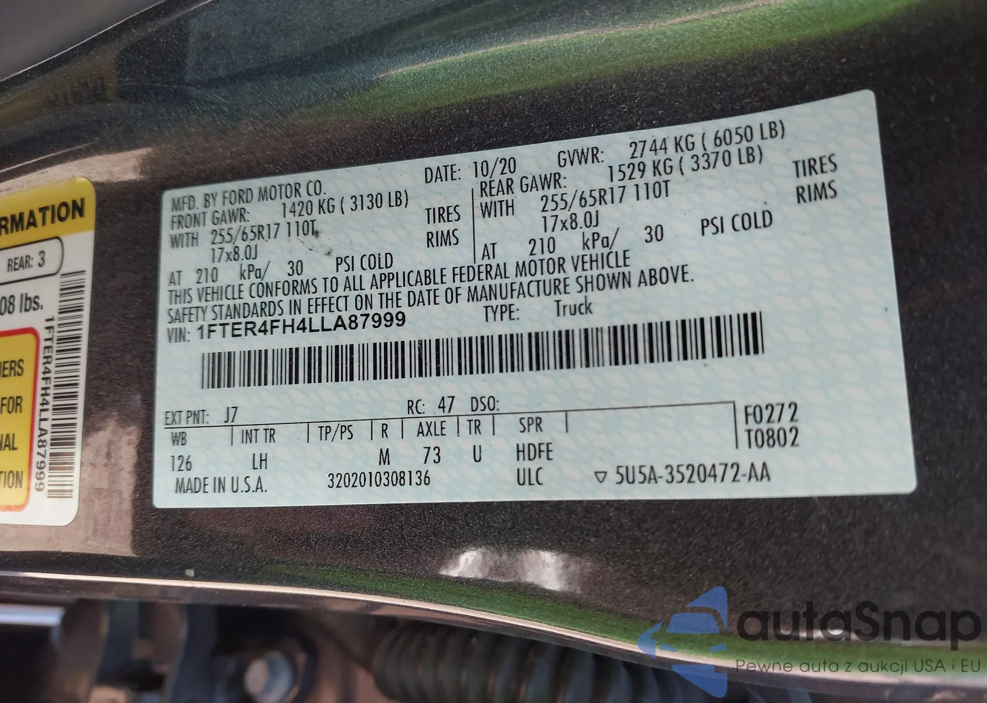 Samochód Ford Ranger 2020 (VIN 1FTER4FH4LLA87999) nie był wcześniej licytowany. Dokumenty są czyste, przebieg odpowiada lub jest niższy niż średnia rynku. Sprzedaje go firma ubezpieczeniowa – polecamy zakup. Dostawa do portu zajmie ok. 6–8 tygodni.