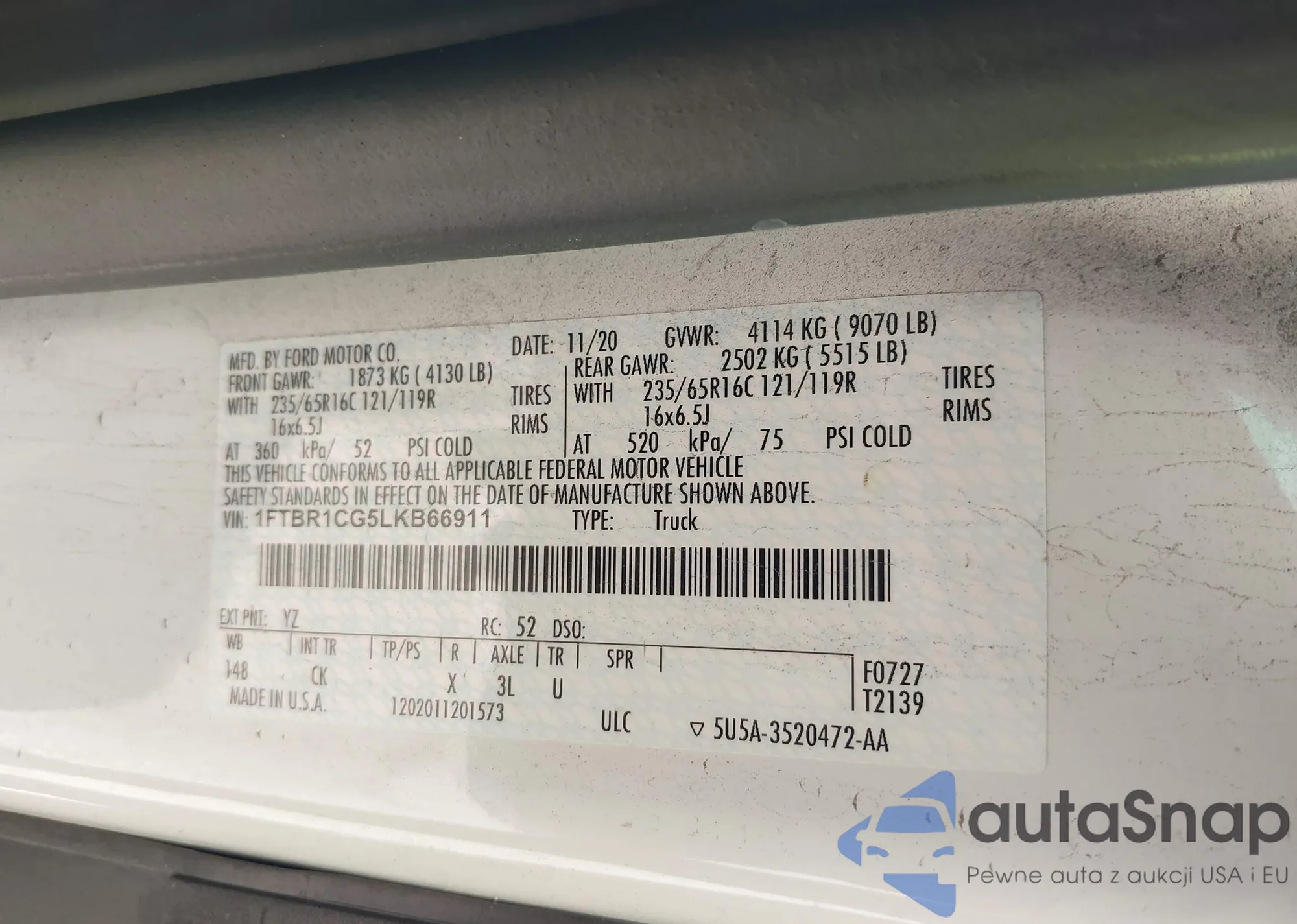 • VIN: 1FTBR1CG5LKB66911