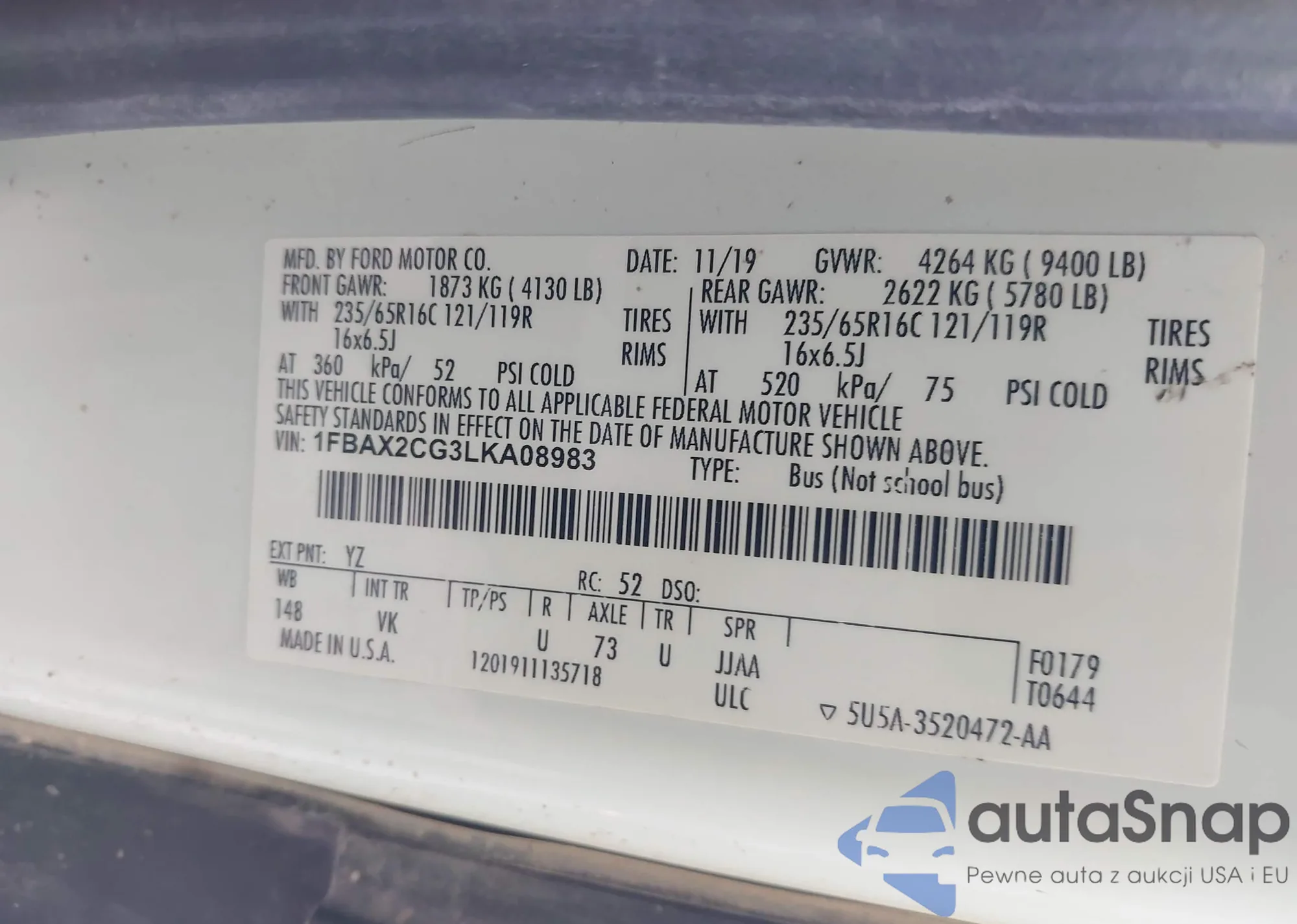 • VIN: 1FBAX2CG3LKA08983