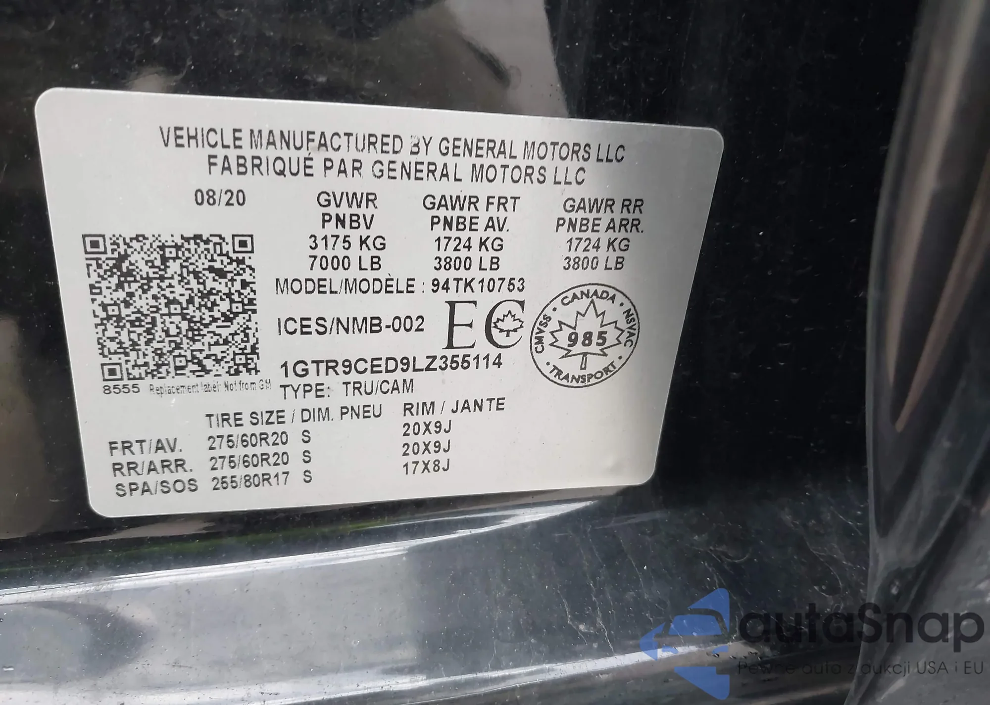 Samochód GMC Sierra 2020 (VIN 1GTR9CED9LZ355114) nie był wcześniej licytowany. Dokumenty są czyste, przebieg odpowiada lub jest niższy niż średnia rynku. Sprzedaje go firma ubezpieczeniowa – polecamy zakup. Dostawa do portu zajmie ok. 6–8 tygodni.