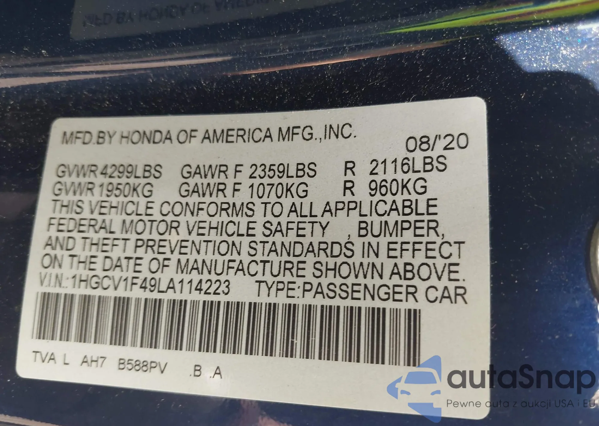VIN: 1HGCV1F49LA114223