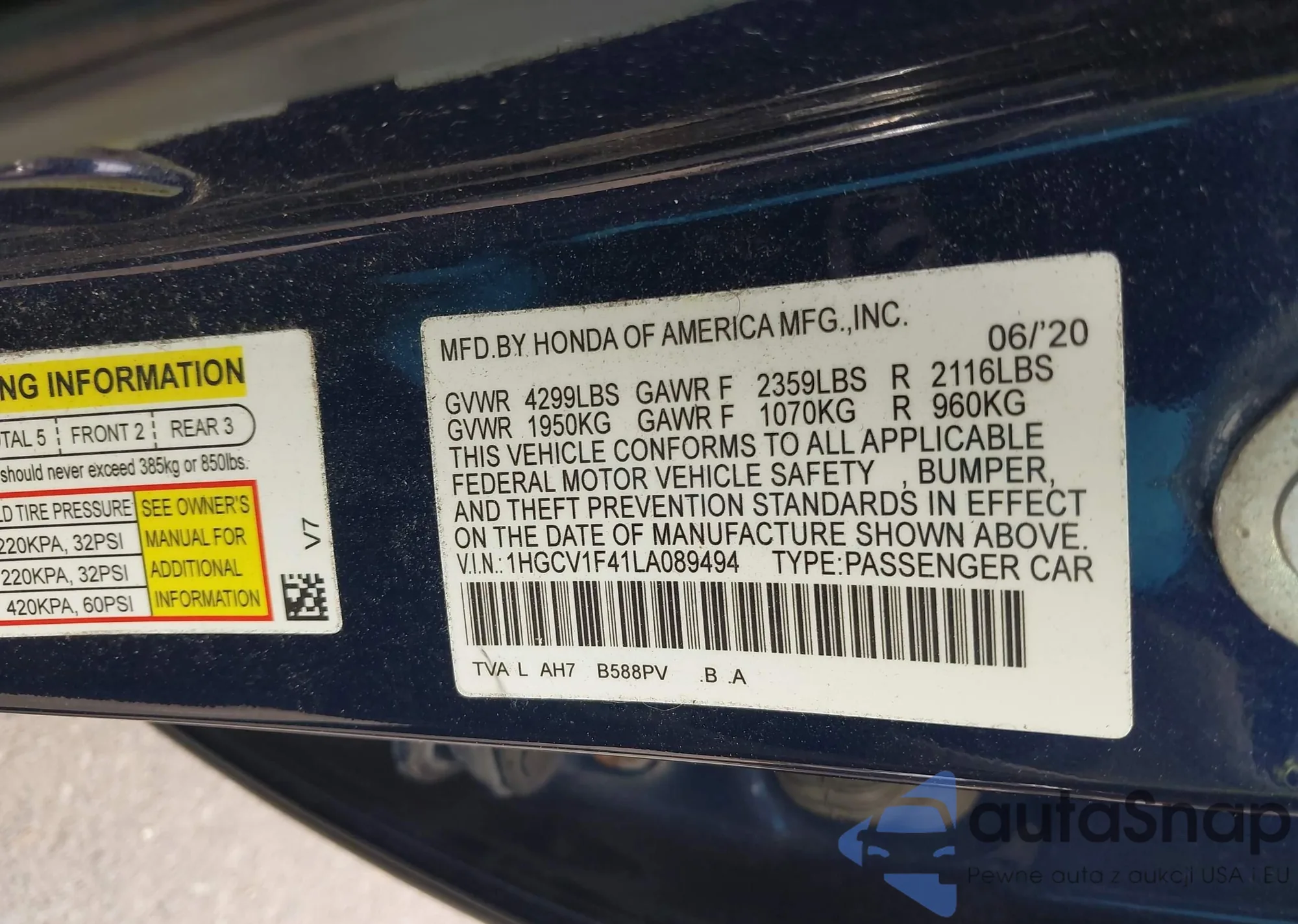 Samochód Honda Accord 2020 (VIN 1HGCV1F41LA089494) nie był wcześniej licytowany. Dokumenty są czyste, przebieg odpowiada lub jest niższy niż średnia rynku. Sprzedaje go firma ubezpieczeniowa – polecamy zakup. Dostawa do portu zajmie ok. 6–8 tygodni.