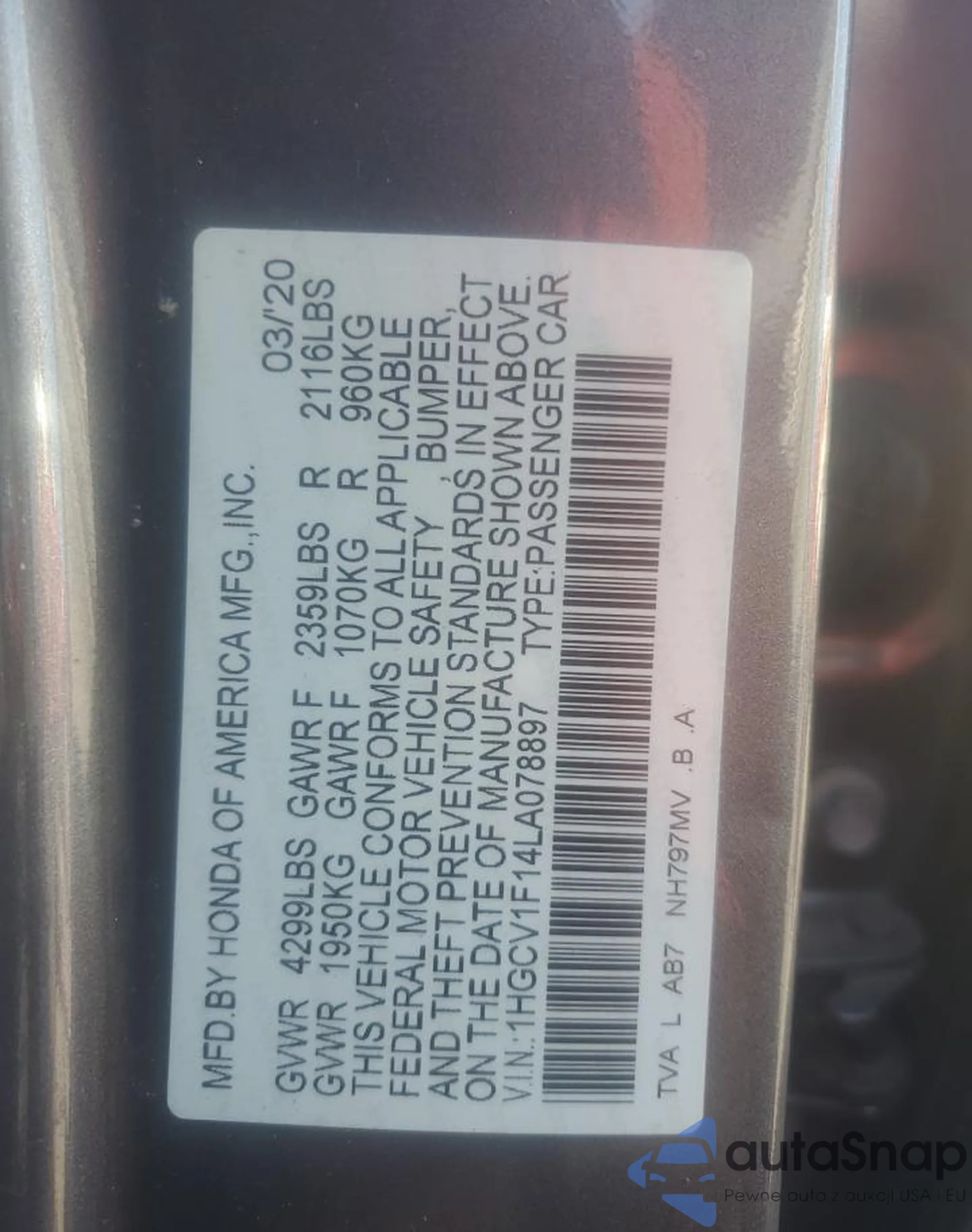 VIN: 1HGCV1F14LA078897