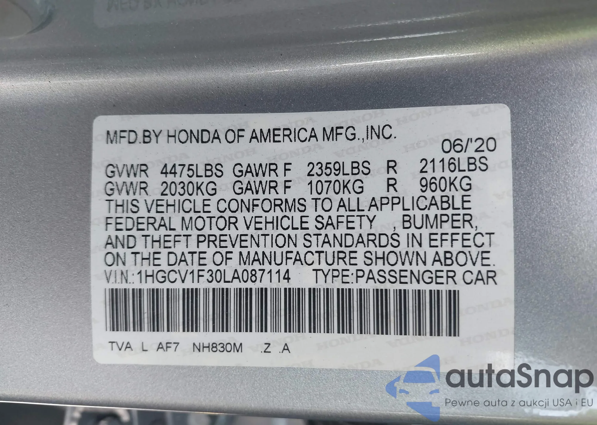 VIN: 1HGCV1F30LA087114