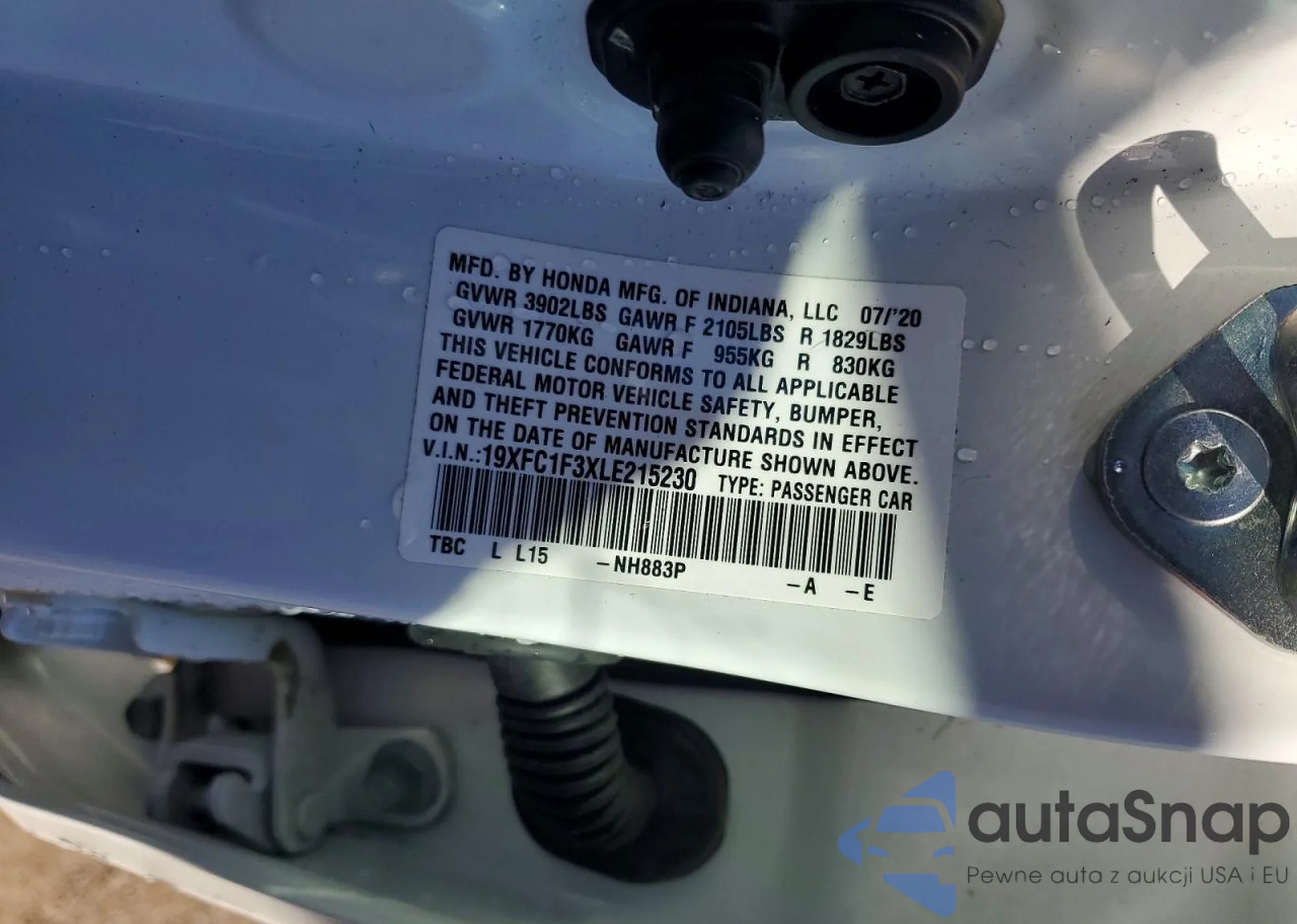 Samochód Honda Civic 2020 (VIN 19XFC1F3XLE215230) sprzedaje go niezweryfikowany sprzedawca. Zalecamy raport Carfax i potwierdzenie możliwości rejestracji pojazdu przed zakupem.