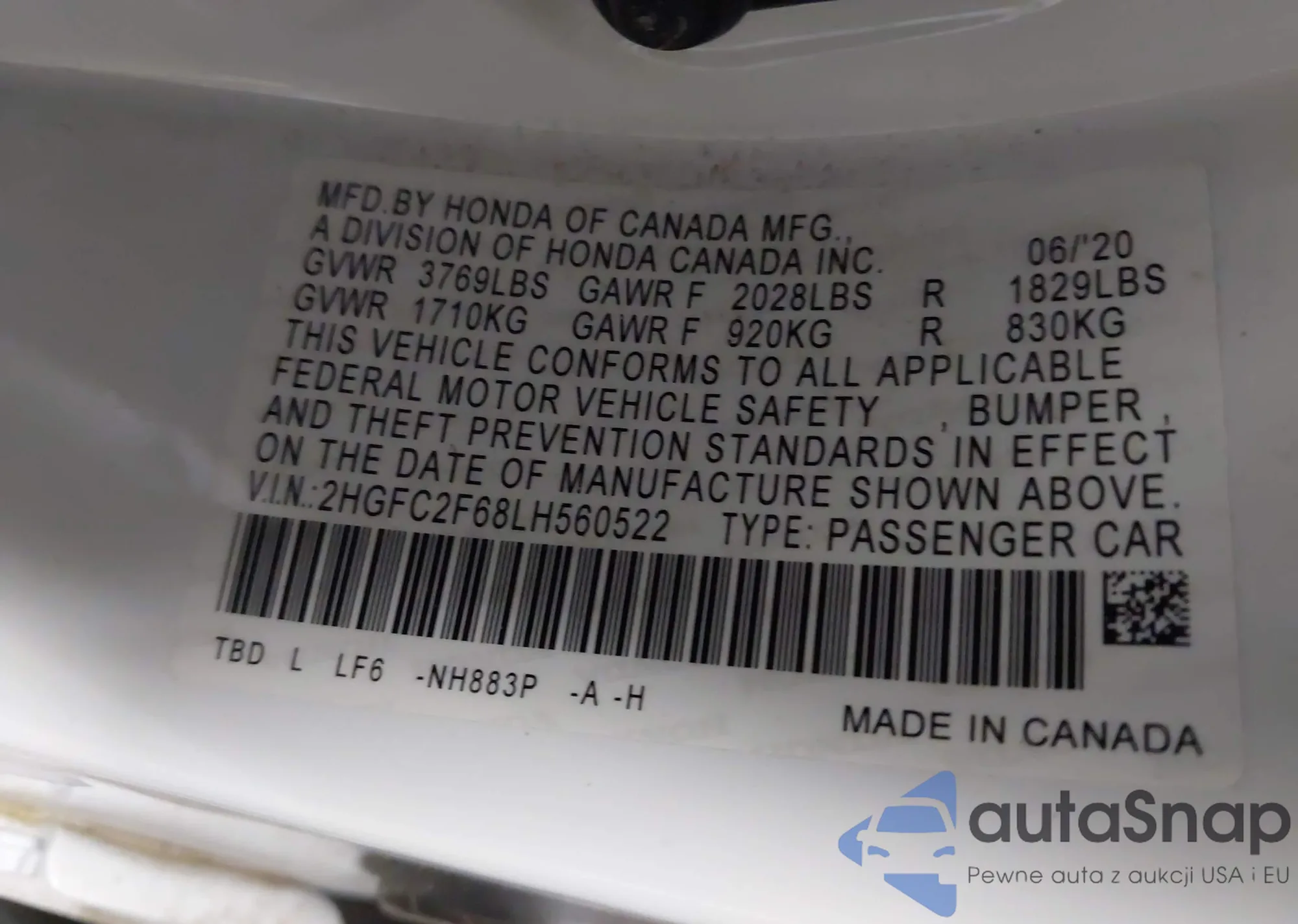 VIN: 2HGFC2F68LH560522