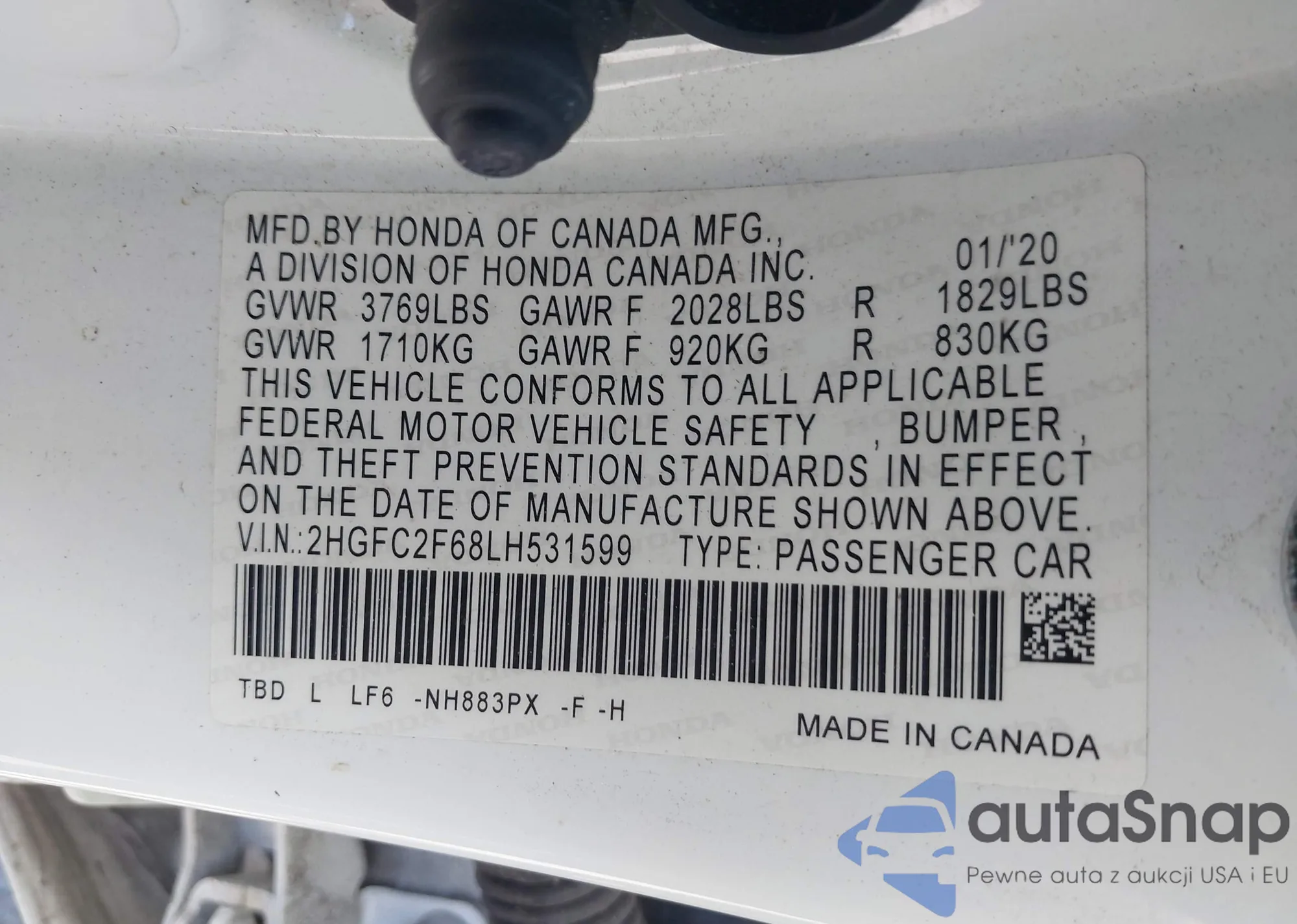 VIN: 2HGFC2F68LH531599