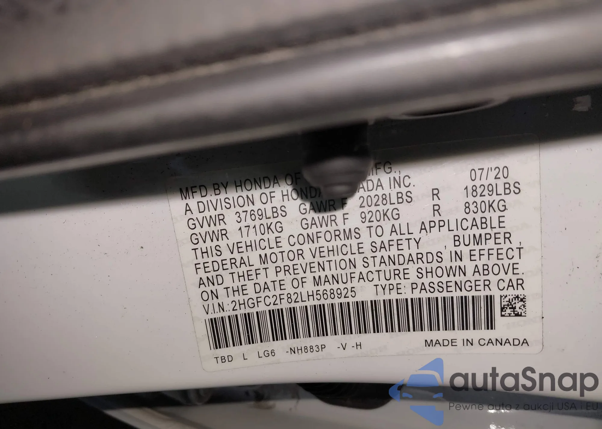 VIN: 2HGFC2F82LH568925