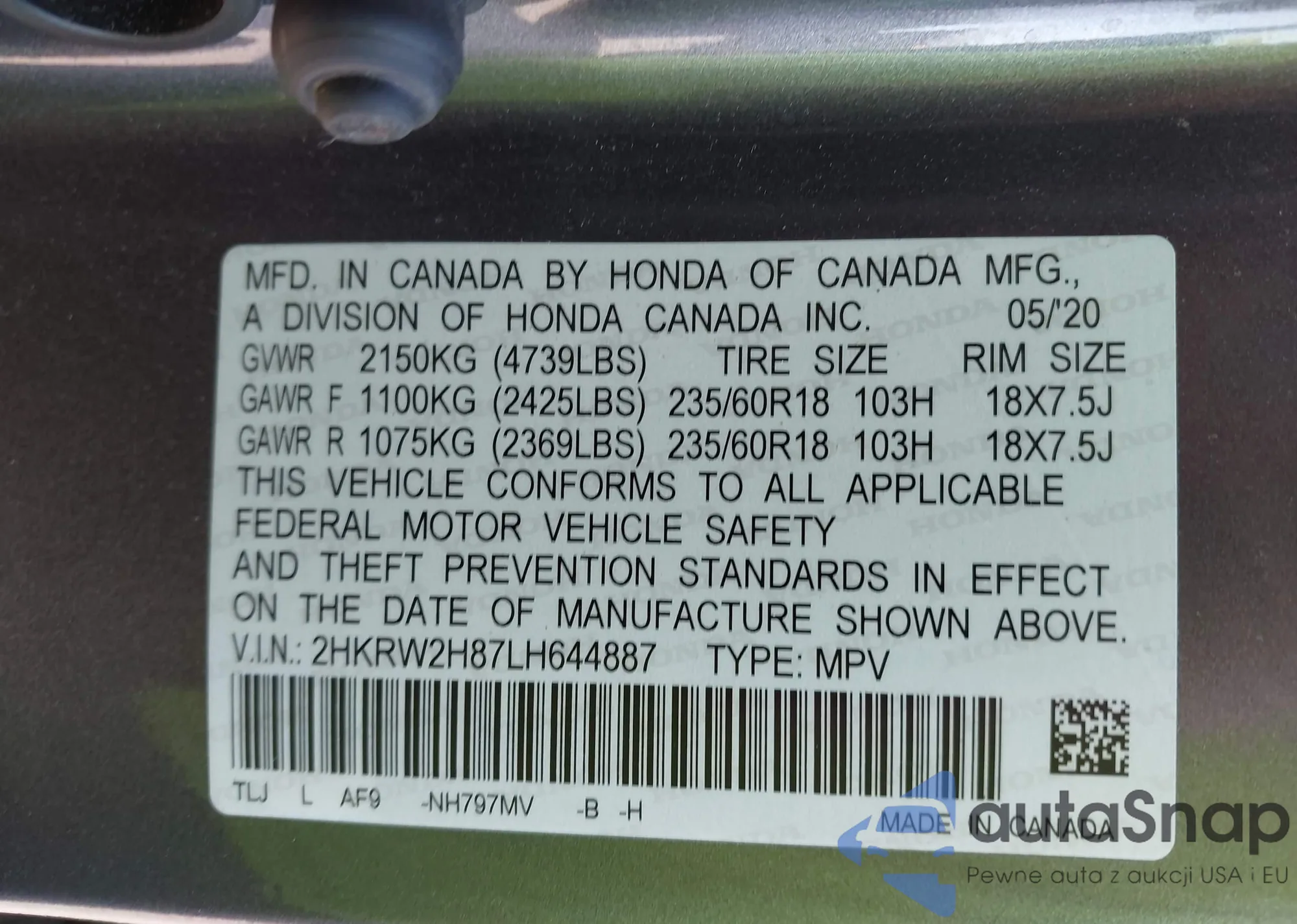 VIN: 2HKRW2H87LH644887
