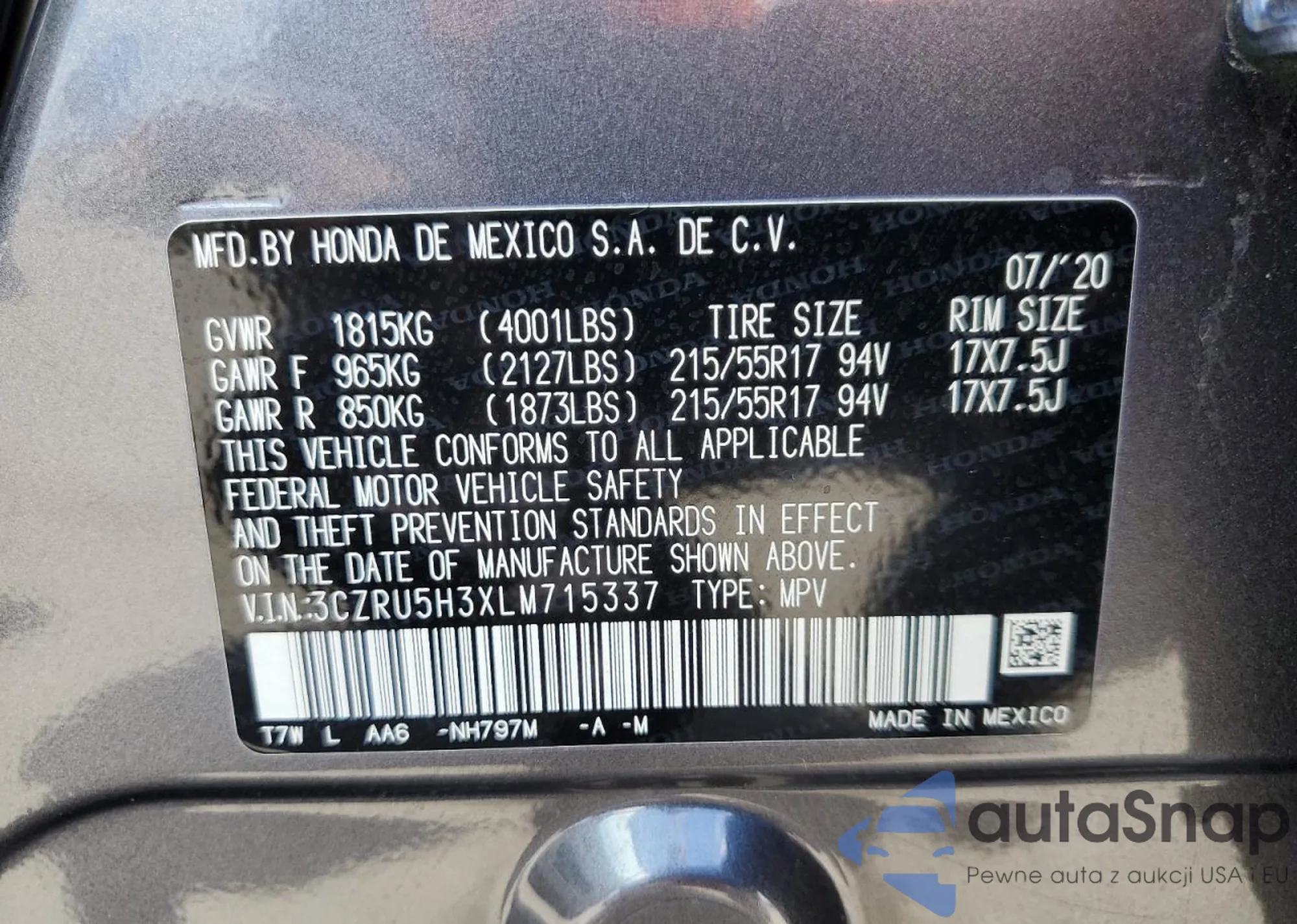 Honda HR-V 2020 – Historia pojazdu (sprzedany na COPART)