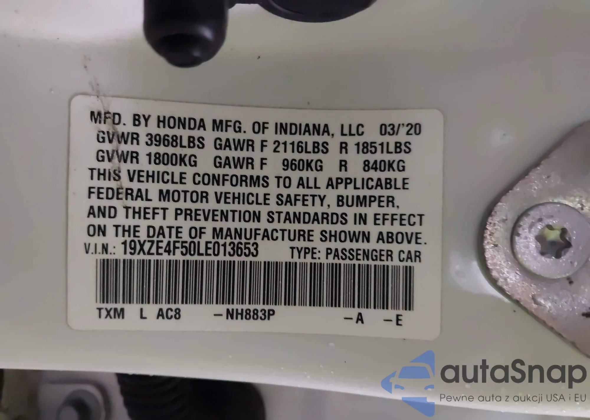 • VIN: 19XZE4F50LE013653