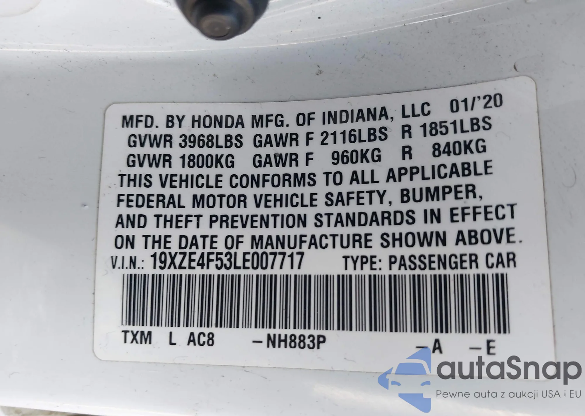 • VIN: 19XZE4F53LE007717