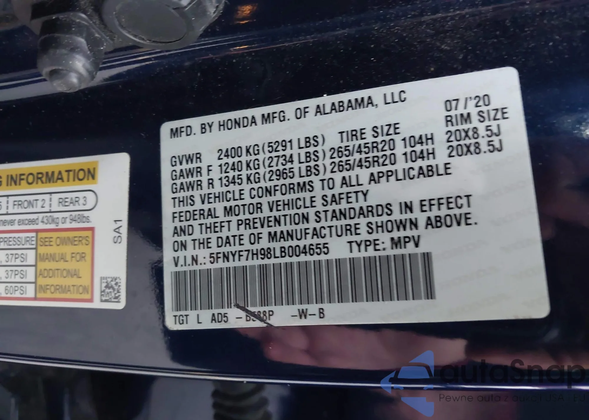 VIN: 5FNYF7H98LB004655