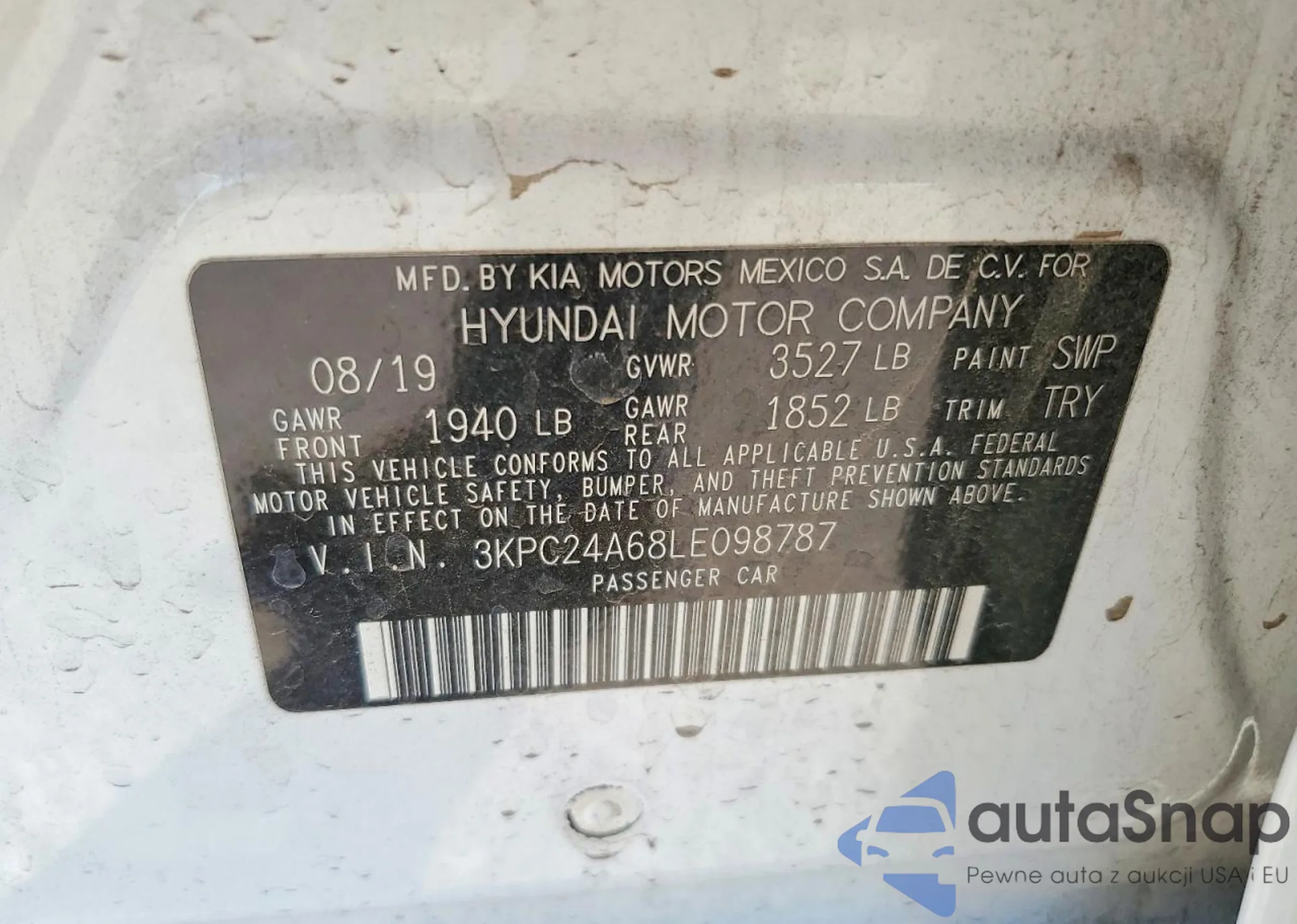 Samochód Hyundai Accent 2020 (VIN 3KPC24A68LE098787) sprzedaje go niezweryfikowany sprzedawca. Zalecamy raport Carfax i potwierdzenie możliwości rejestracji pojazdu przed zakupem.