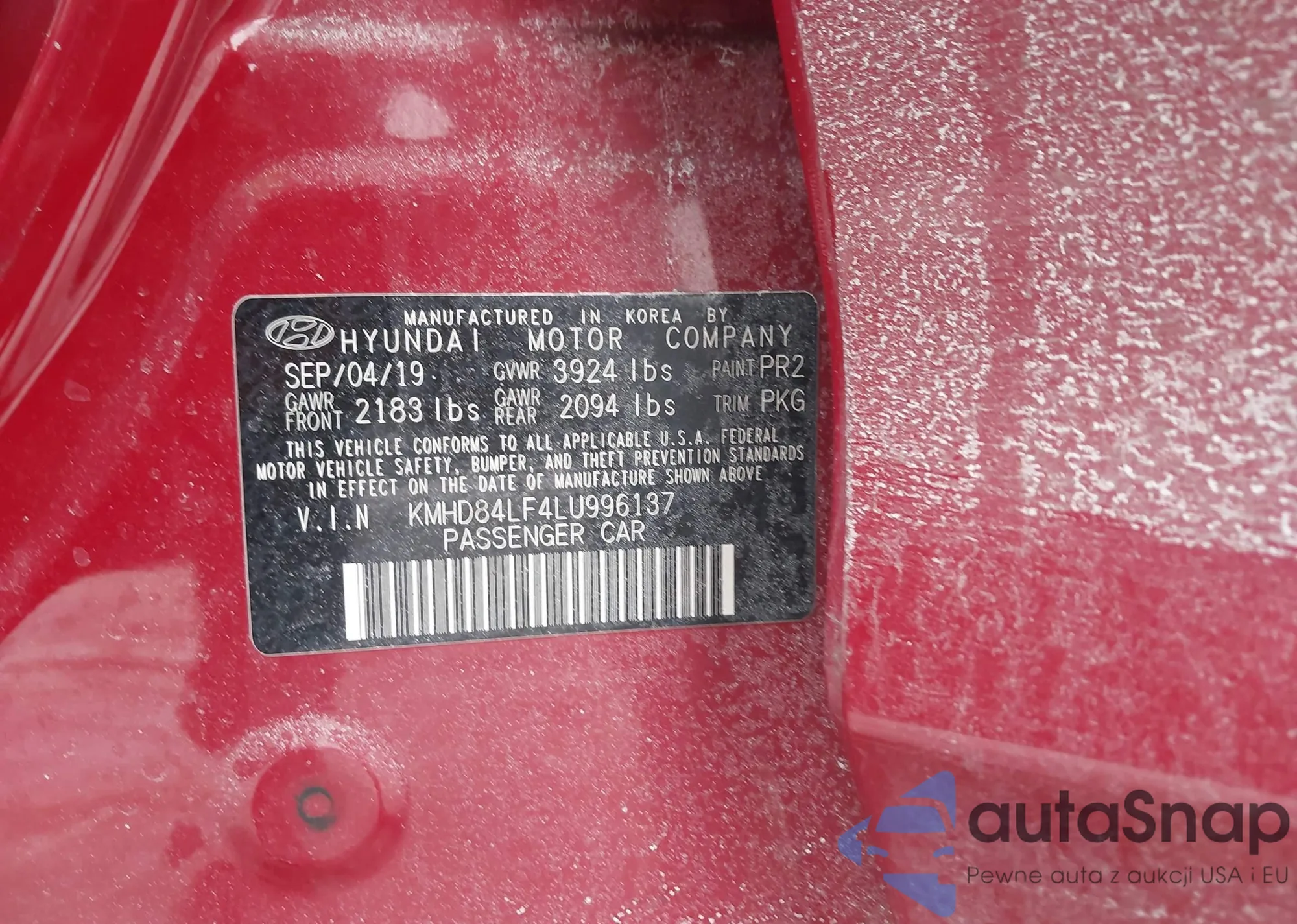Samochód Hyundai Elantra 2020 (VIN KMHD84LF4LU996137) nie był wcześniej licytowany. Dokumenty są czyste, przebieg odpowiada lub jest niższy niż średnia rynku. Sprzedaje go firma ubezpieczeniowa – polecamy zakup. Dostawa do portu zajmie ok. 6–8 tygodni.
