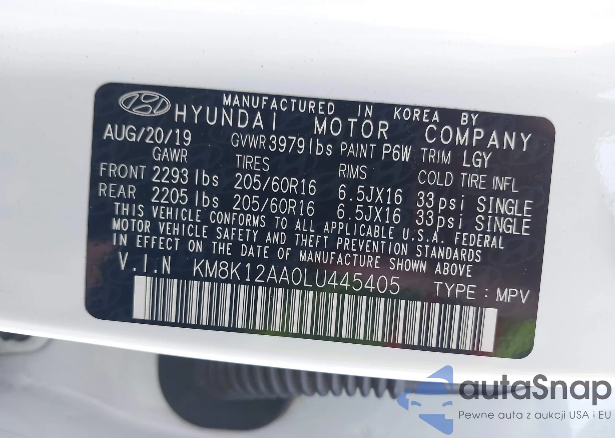 VIN: KM8K12AA0LU445405
