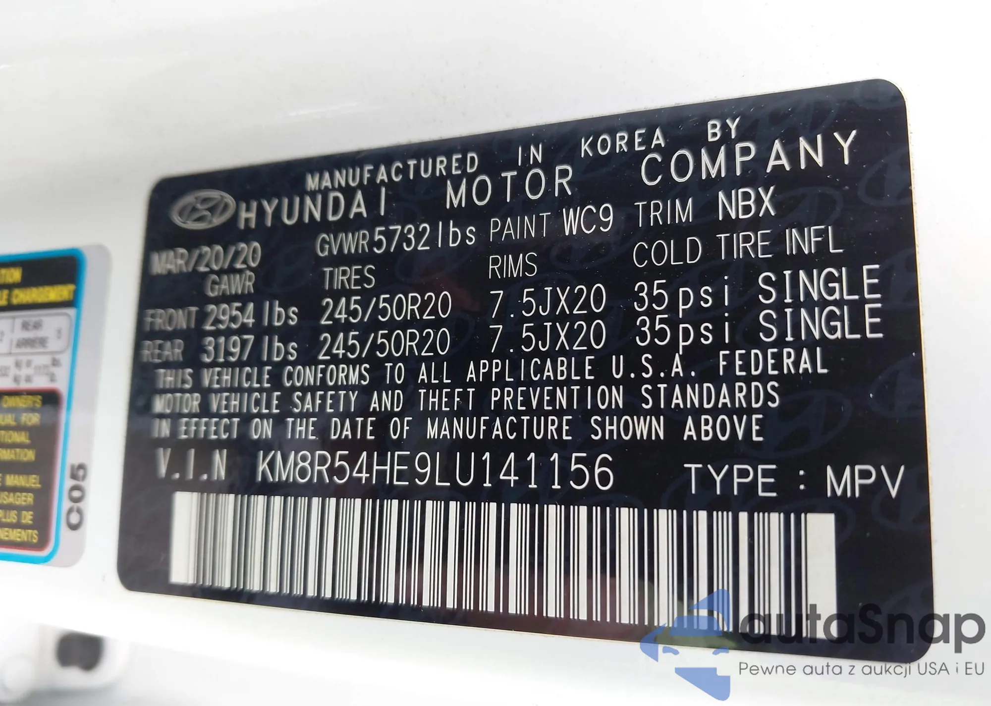 VIN: KM8R54HE9LU141156