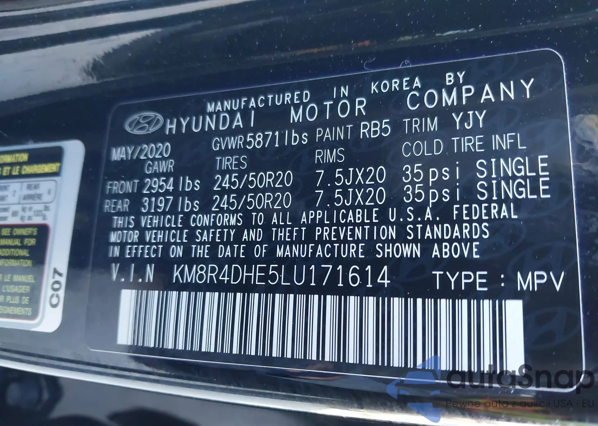 VIN: KM8R4DHE5LU171614