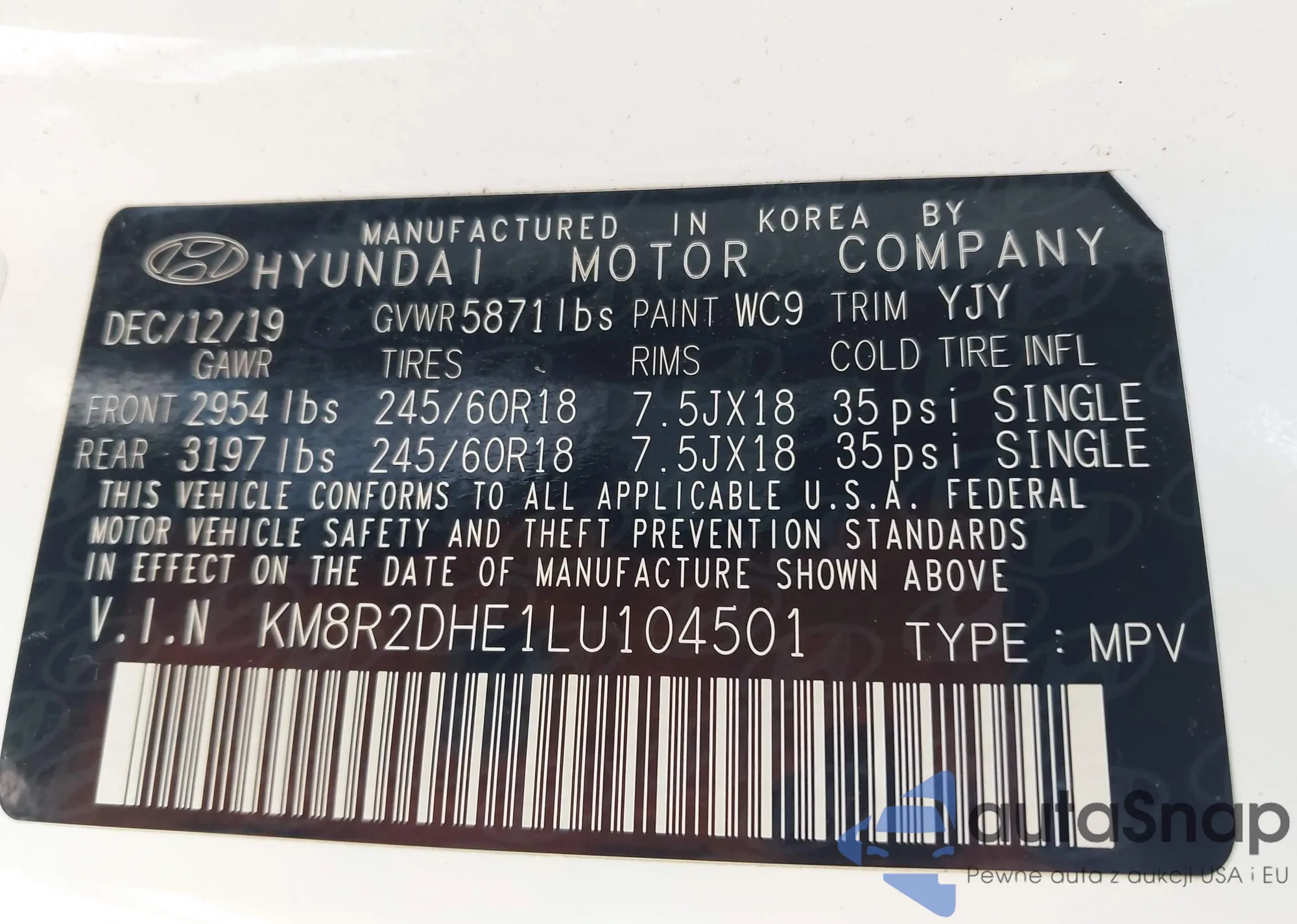 VIN: KM8R2DHE1LU104501