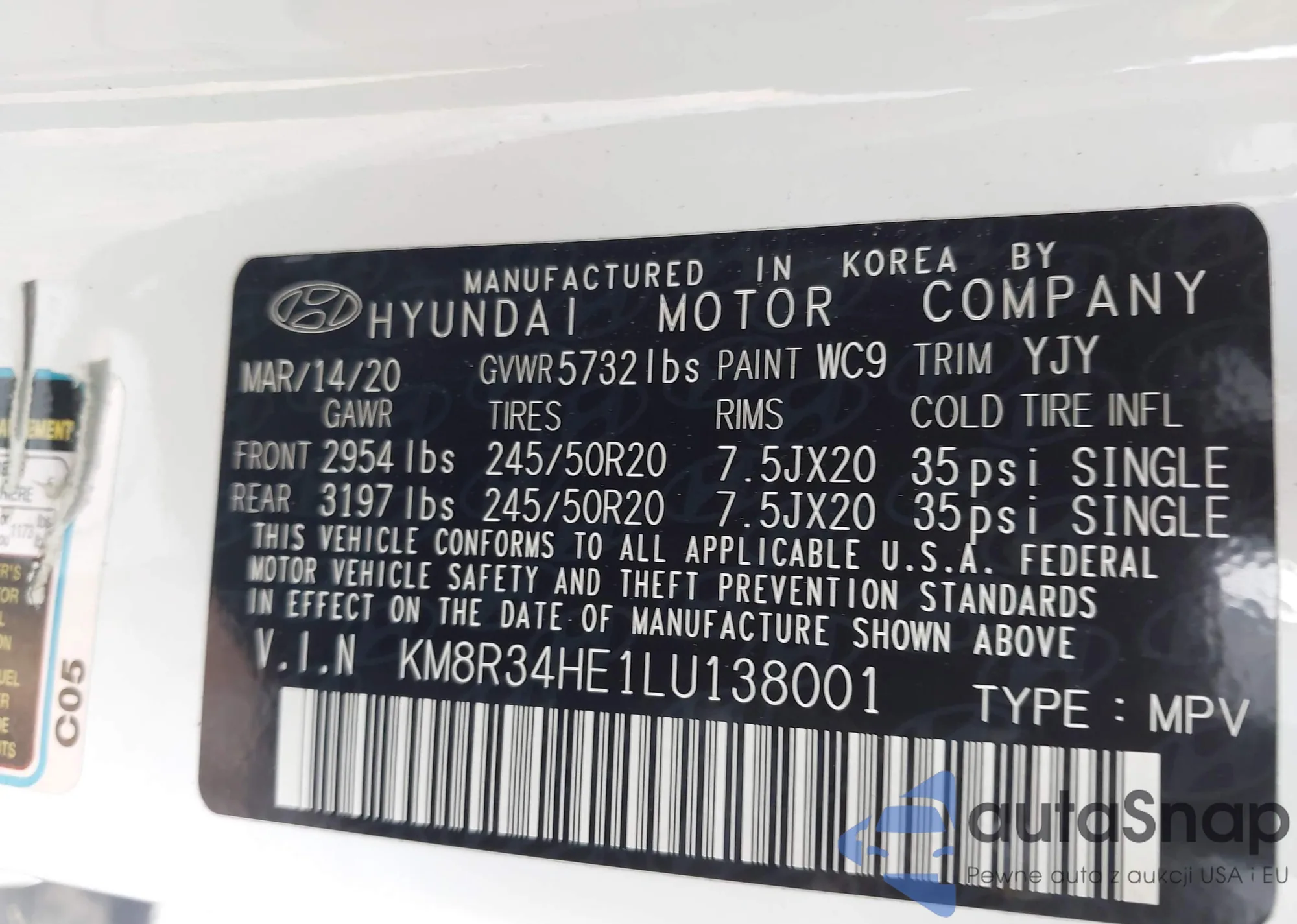 VIN: KM8R34HE1LU138001