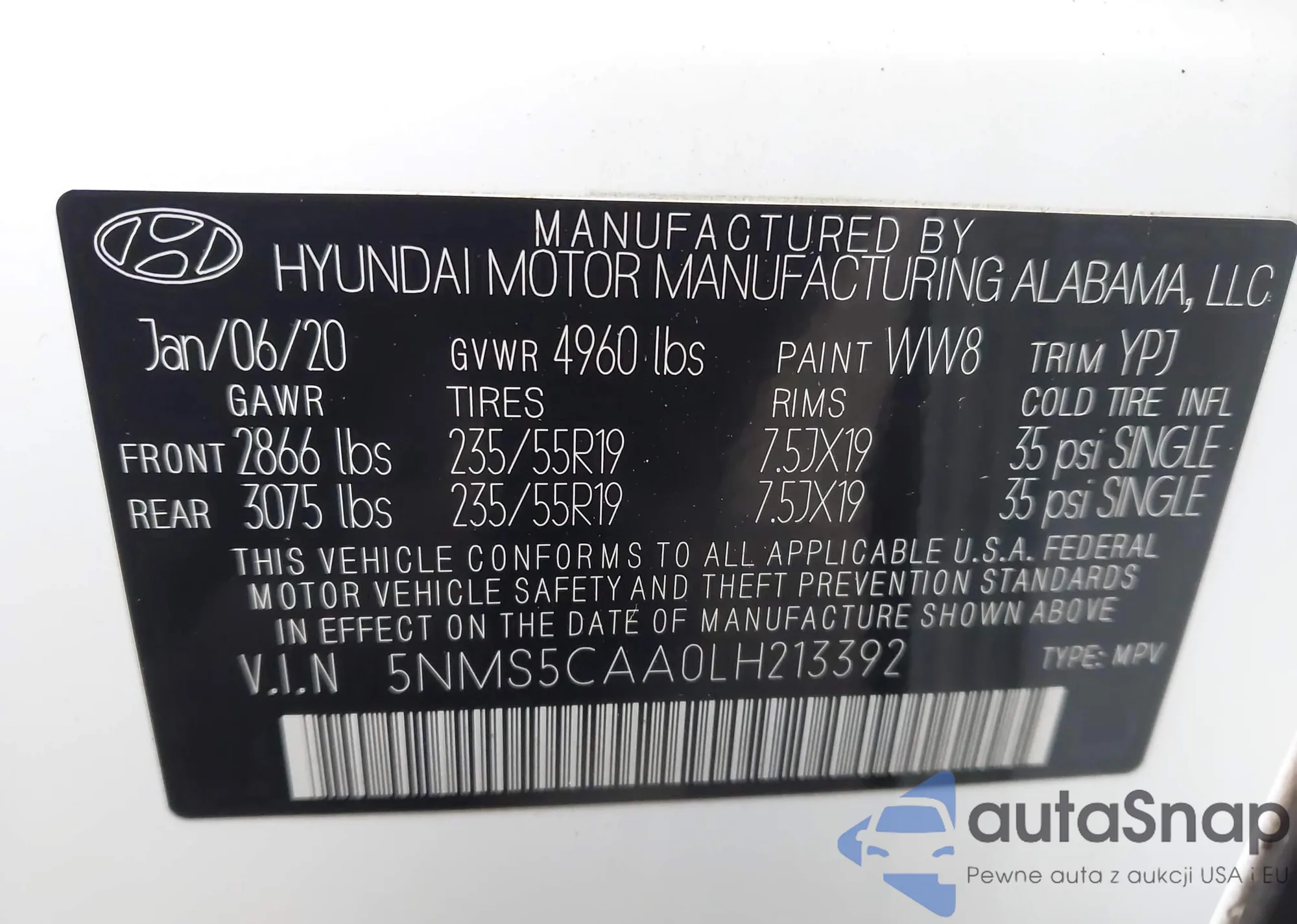VIN: 5NMS5CAA0LH213392