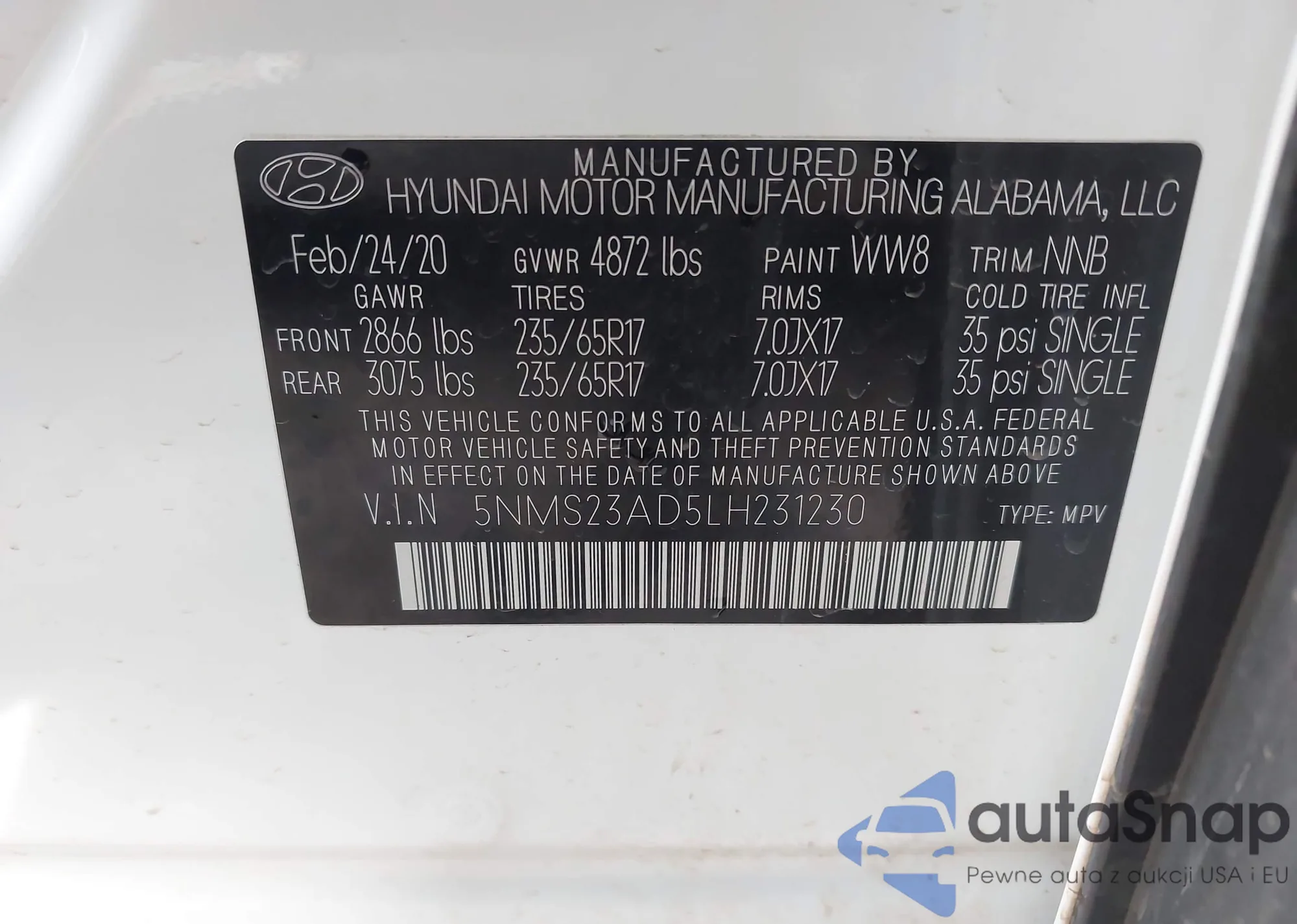 • VIN: 5NMS23AD5LH231230