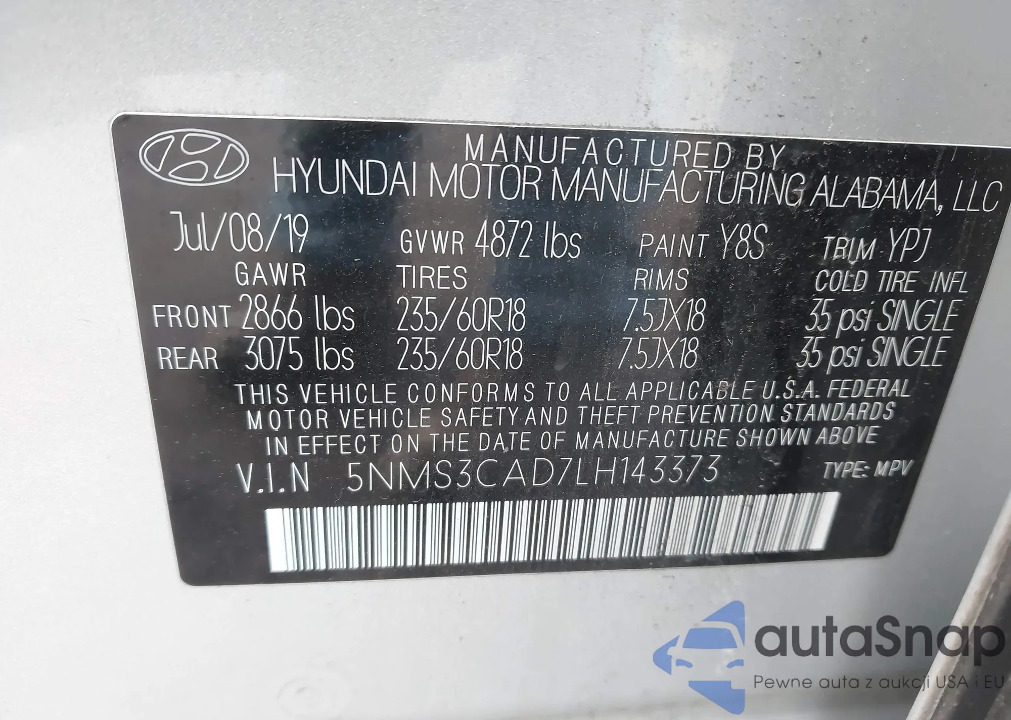 • VIN: 5NMS3CAD7LH143373