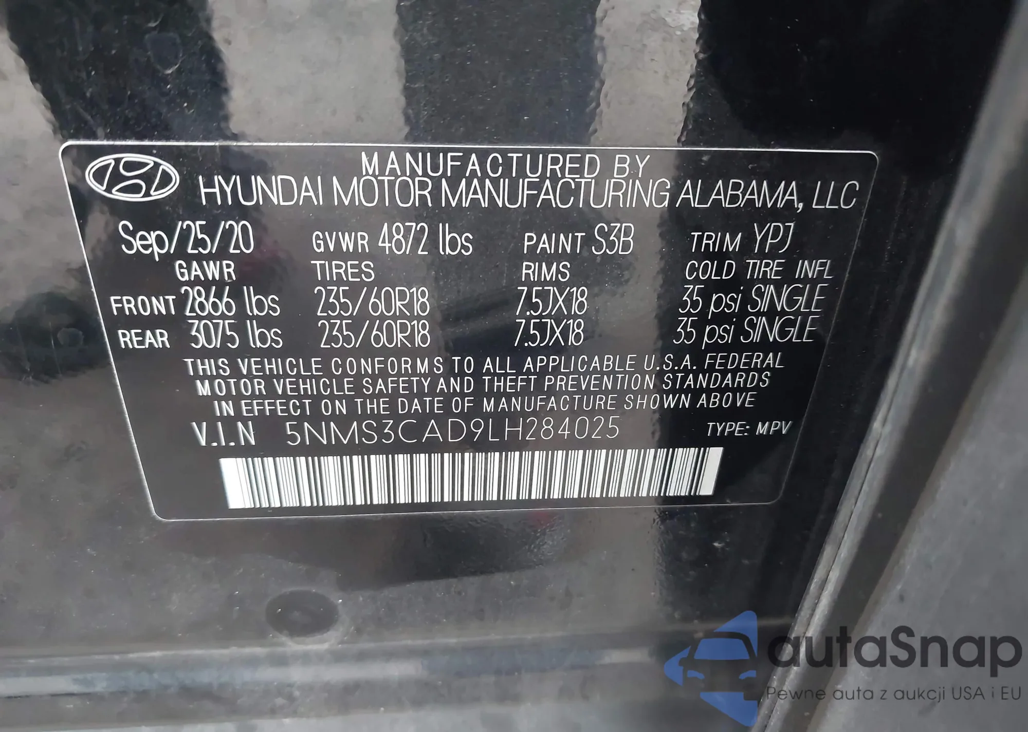 VIN: 5NMS3CAD9LH284025