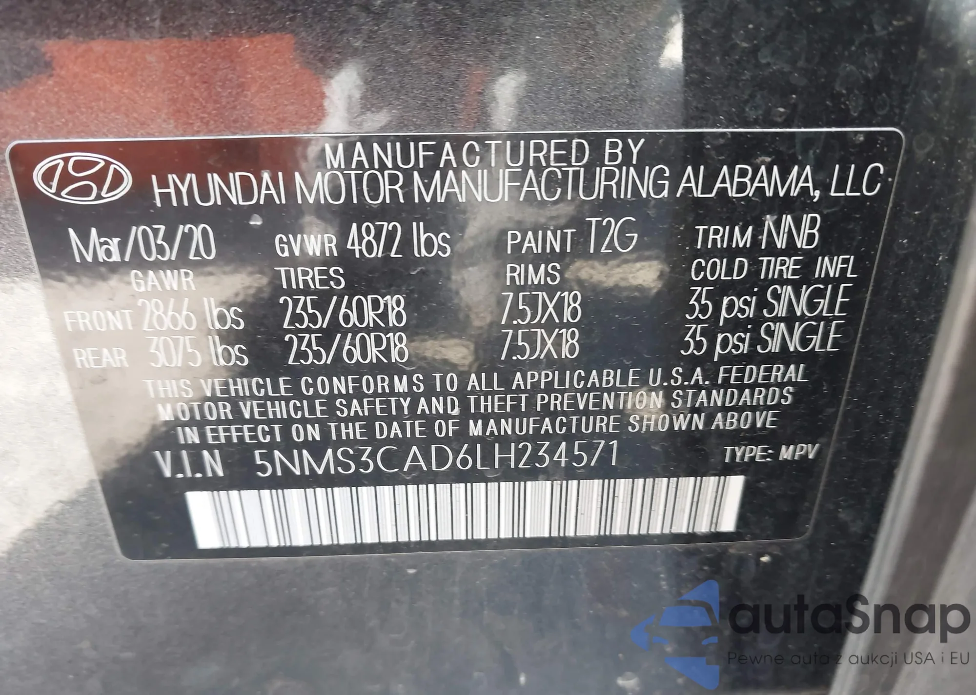 • VIN: 5NMS3CAD6LH234571