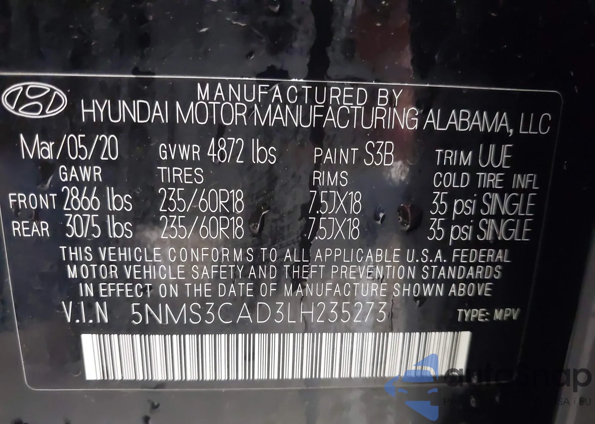 VIN: 5NMS3CAD3LH235273