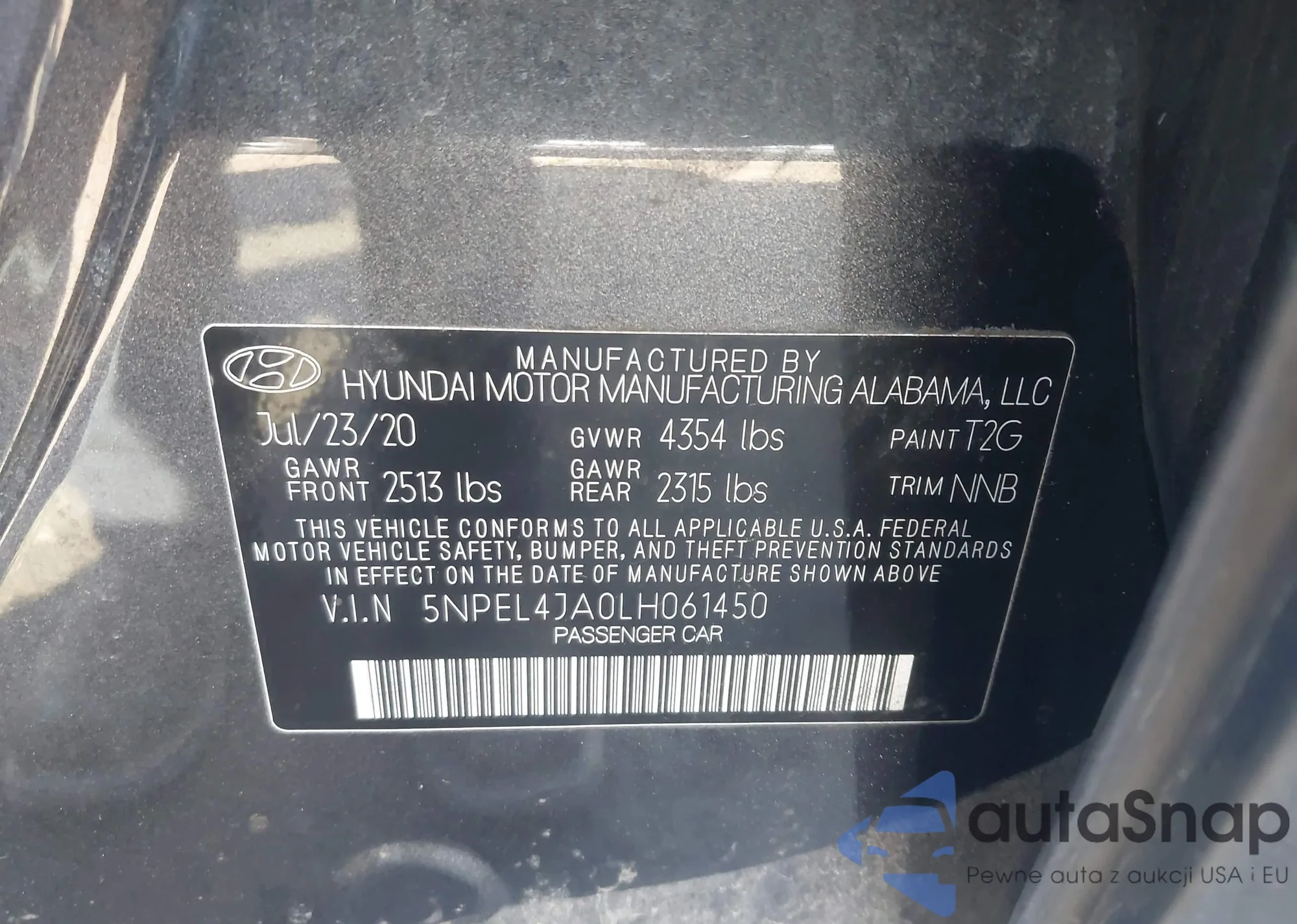 VIN: 5NPEL4JA0LH061450