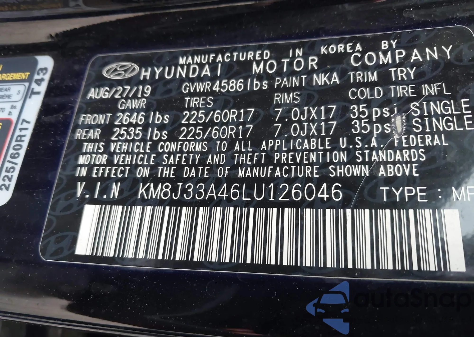 VIN: KM8J33A46LU126046