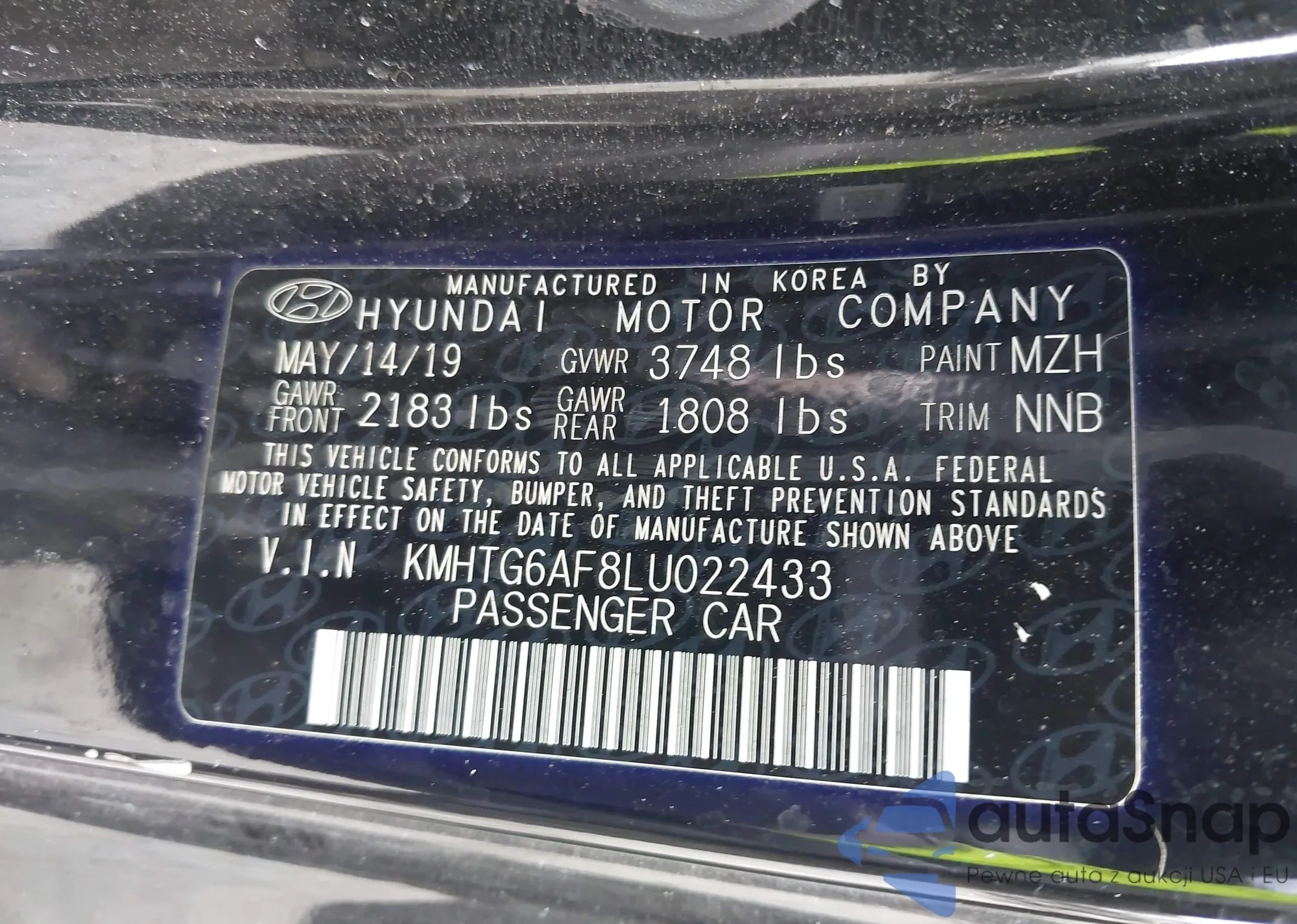 VIN: KMHTG6AF8LU022433