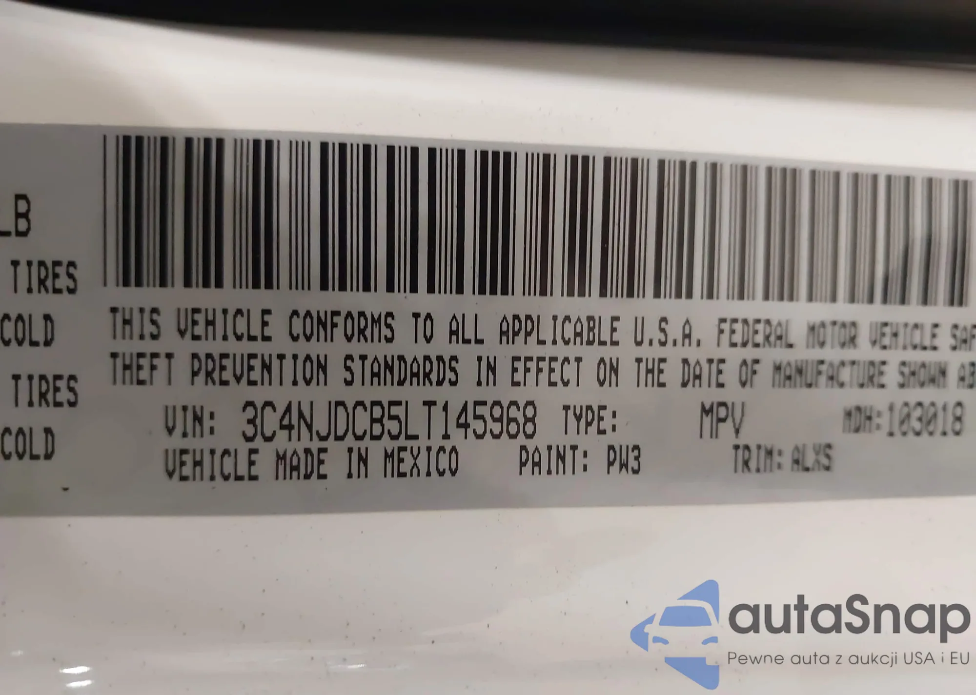 Samochód Jeep Compass 2020 (VIN 3C4NJDCB5LT145968) nie był wcześniej licytowany. Dokumenty są czyste, przebieg odpowiada lub jest niższy niż średnia rynku. Sprzedaje go firma ubezpieczeniowa – polecamy zakup. Dostawa do portu zajmie ok. 6–8 tygodni.