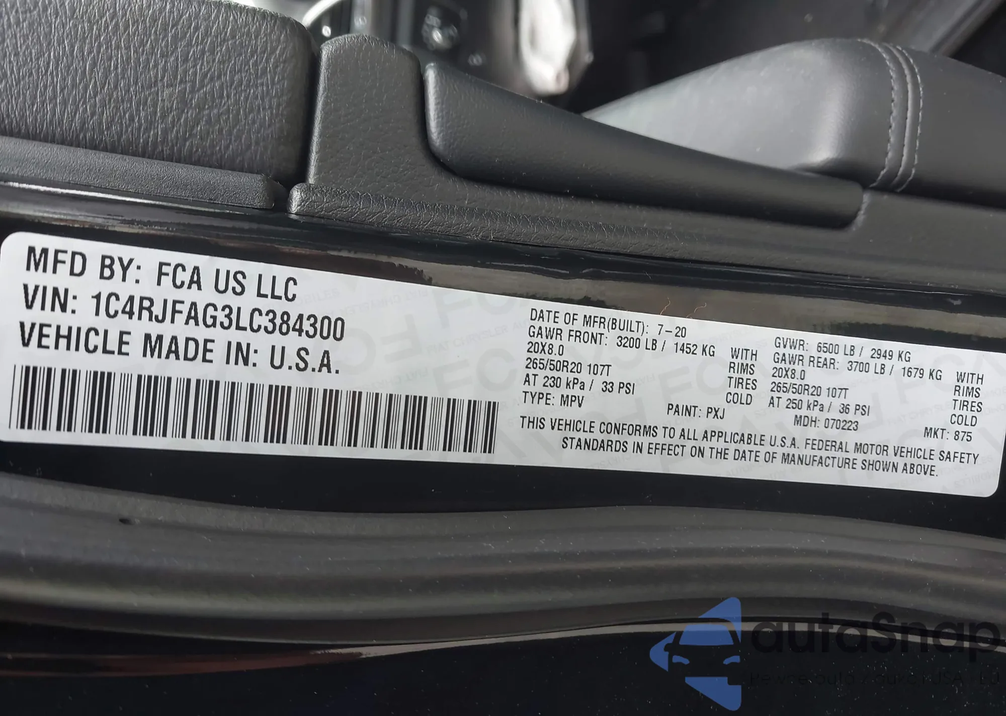VIN: 1C4RJFAG3LC384300