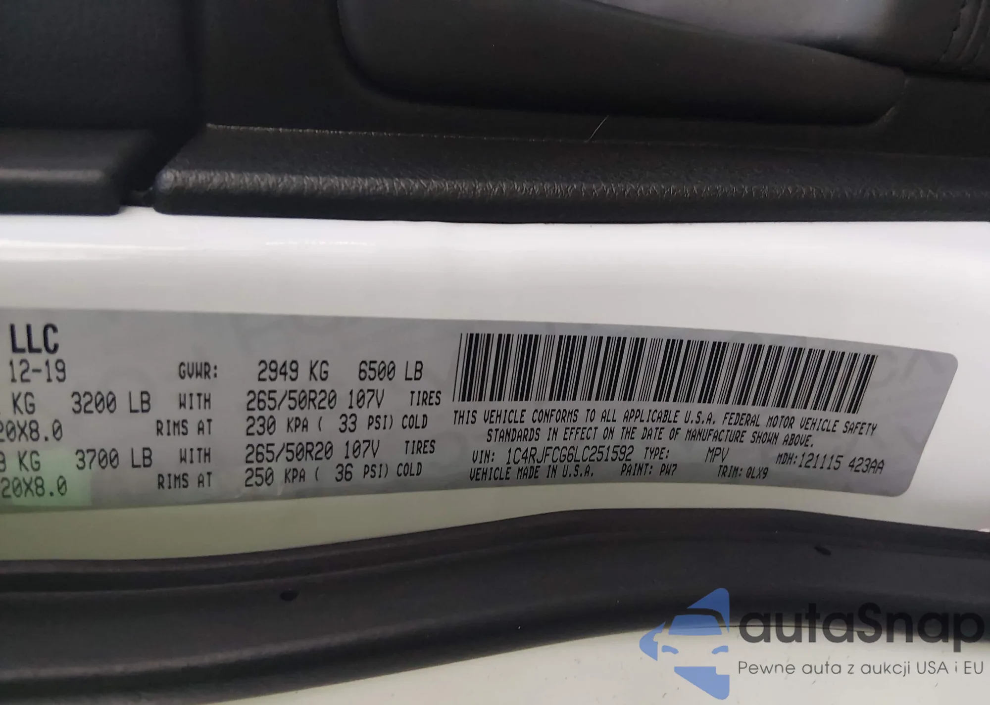 Samochód Jeep Grand Cherokee 2020 (VIN 1C4RJFCG6LC251592) nie był wcześniej licytowany. Dokumenty są czyste, przebieg odpowiada lub jest niższy niż średnia rynku. Sprzedaje go firma ubezpieczeniowa – polecamy zakup. Dostawa do portu zajmie ok. 6–8 tygodni.