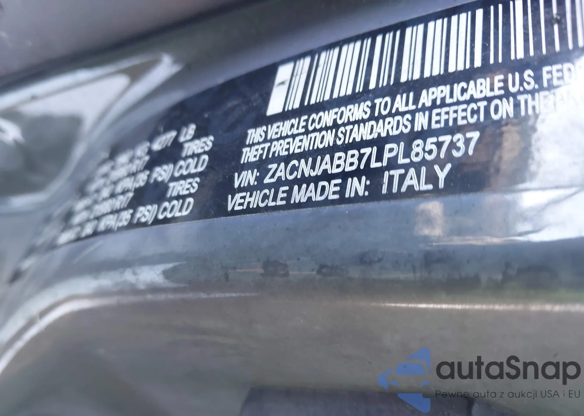 • VIN: ZACNJABB7LPL85737