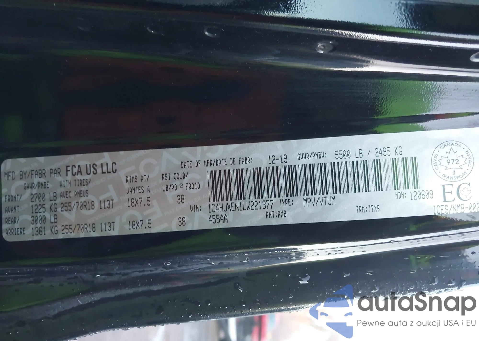 • VIN: 1C4HJXEN1LW221377