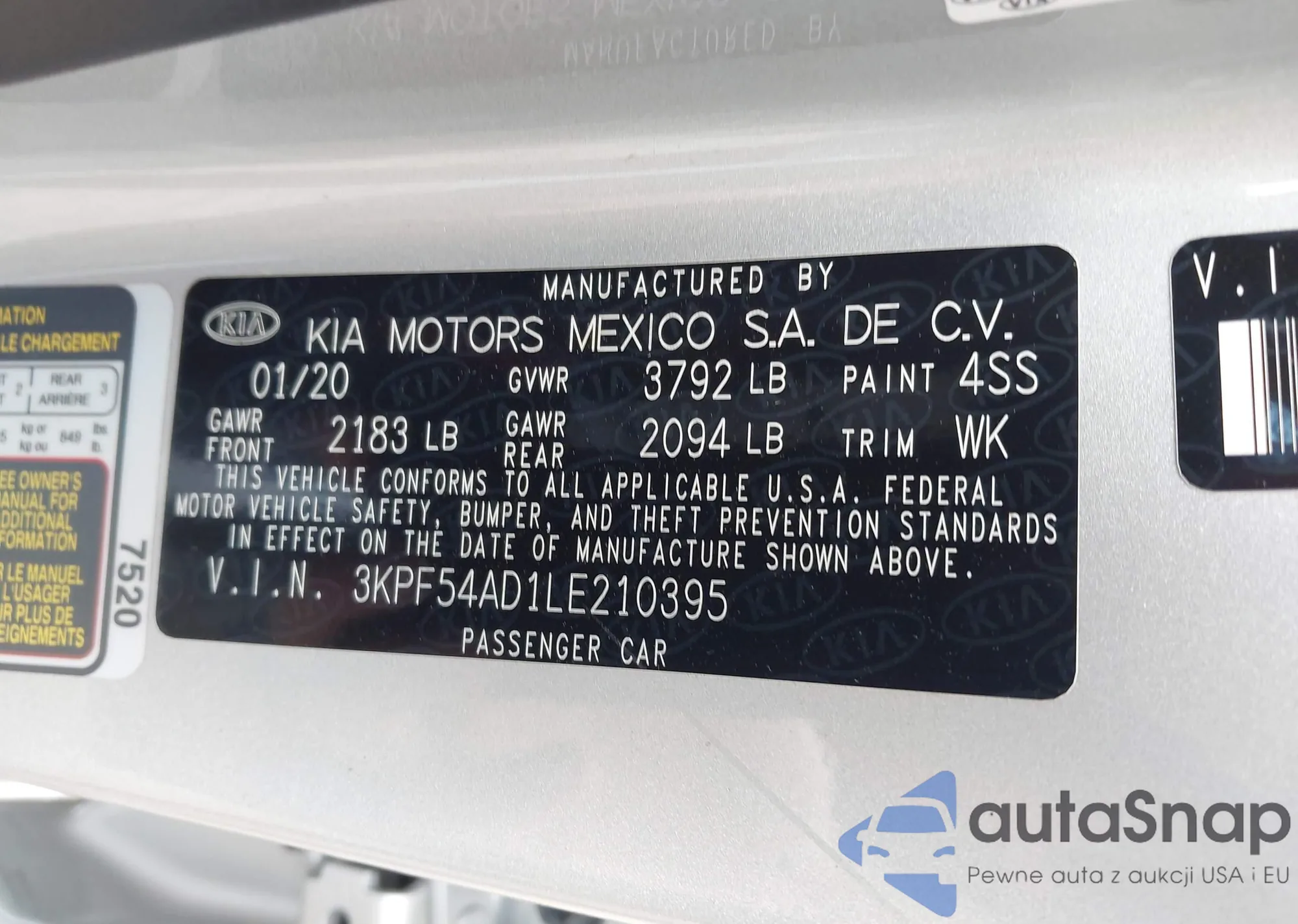 VIN: 3KPF54AD1LE210395