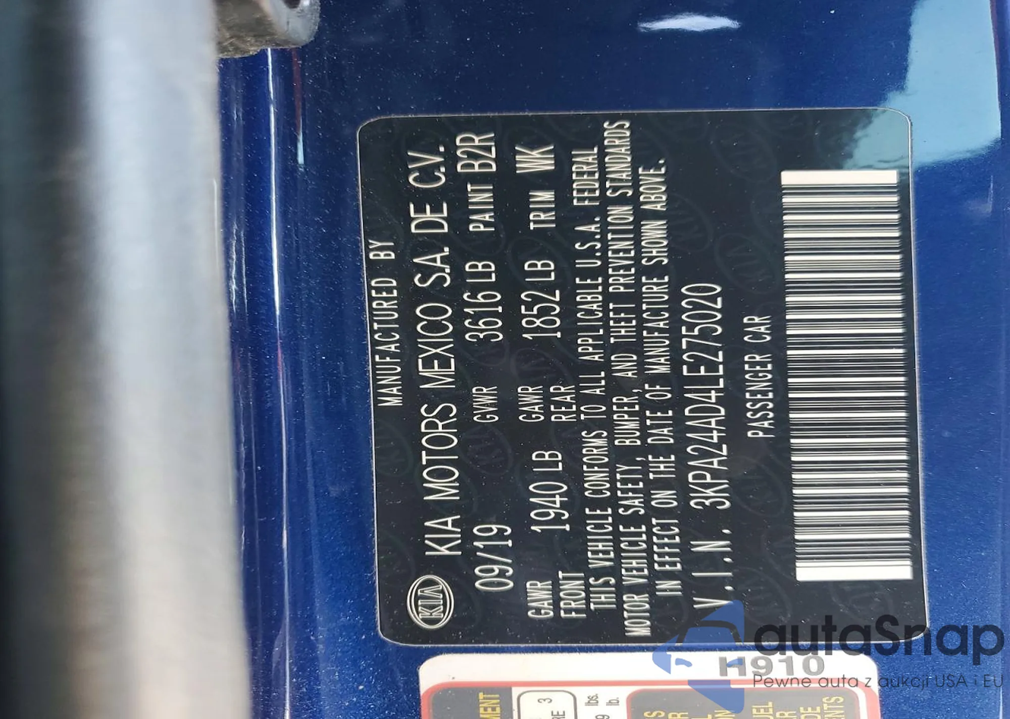 Samochód Kia Rio 2020 (VIN 3KPA24AD4LE275020) nie był wcześniej licytowany. Dokumenty są czyste, przebieg odpowiada lub jest niższy niż średnia rynku. Sprzedaje go firma ubezpieczeniowa – polecamy zakup. Dostawa do portu zajmie ok. 6–8 tygodni.