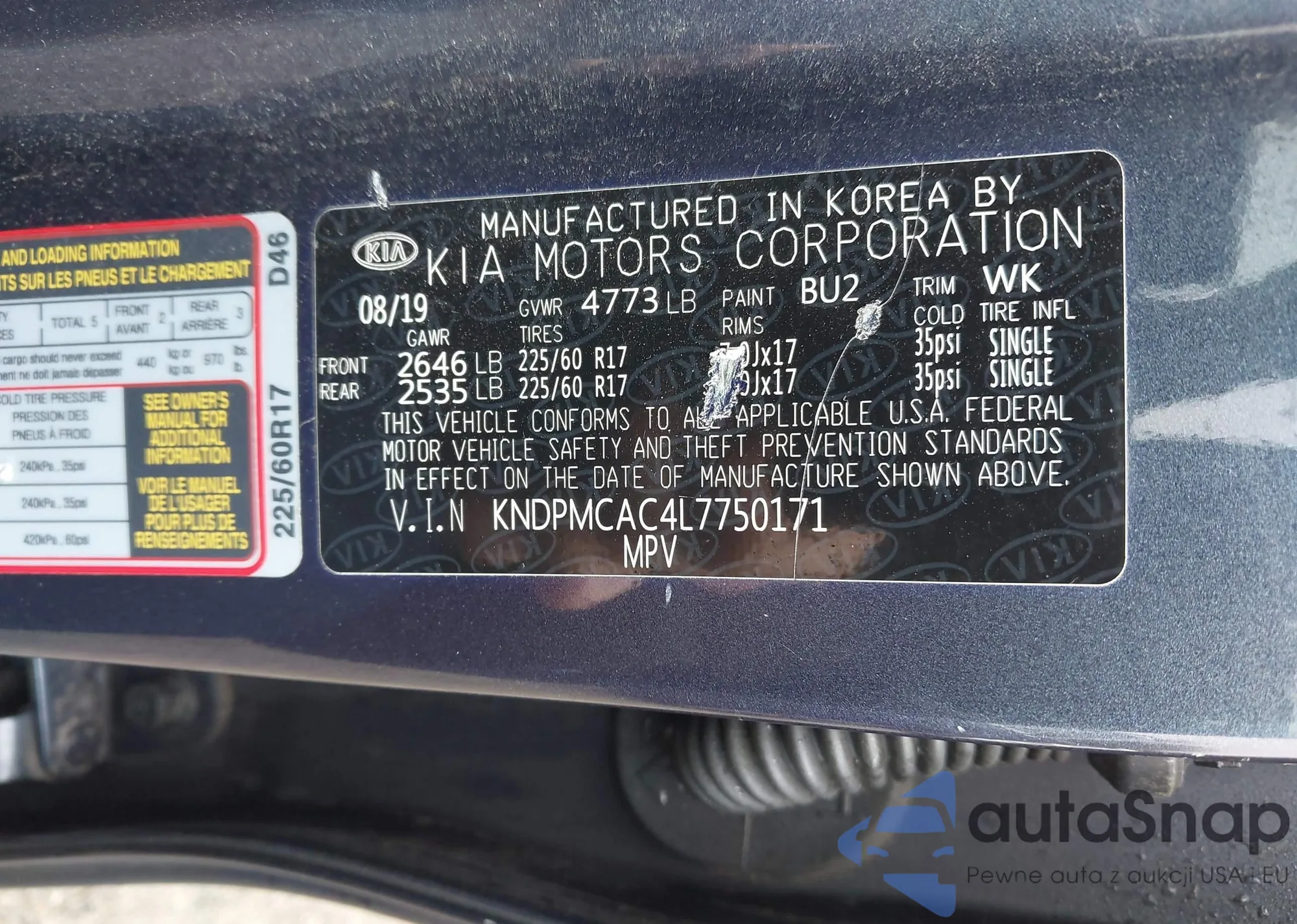 Samochód Kia Sportage 2020 (VIN KNDPMCAC4L7750171) nie był wcześniej licytowany. Dokumenty są czyste, przebieg odpowiada lub jest niższy niż średnia rynku. Sprzedaje go firma ubezpieczeniowa – polecamy zakup. Dostawa do portu zajmie ok. 6–8 tygodni.