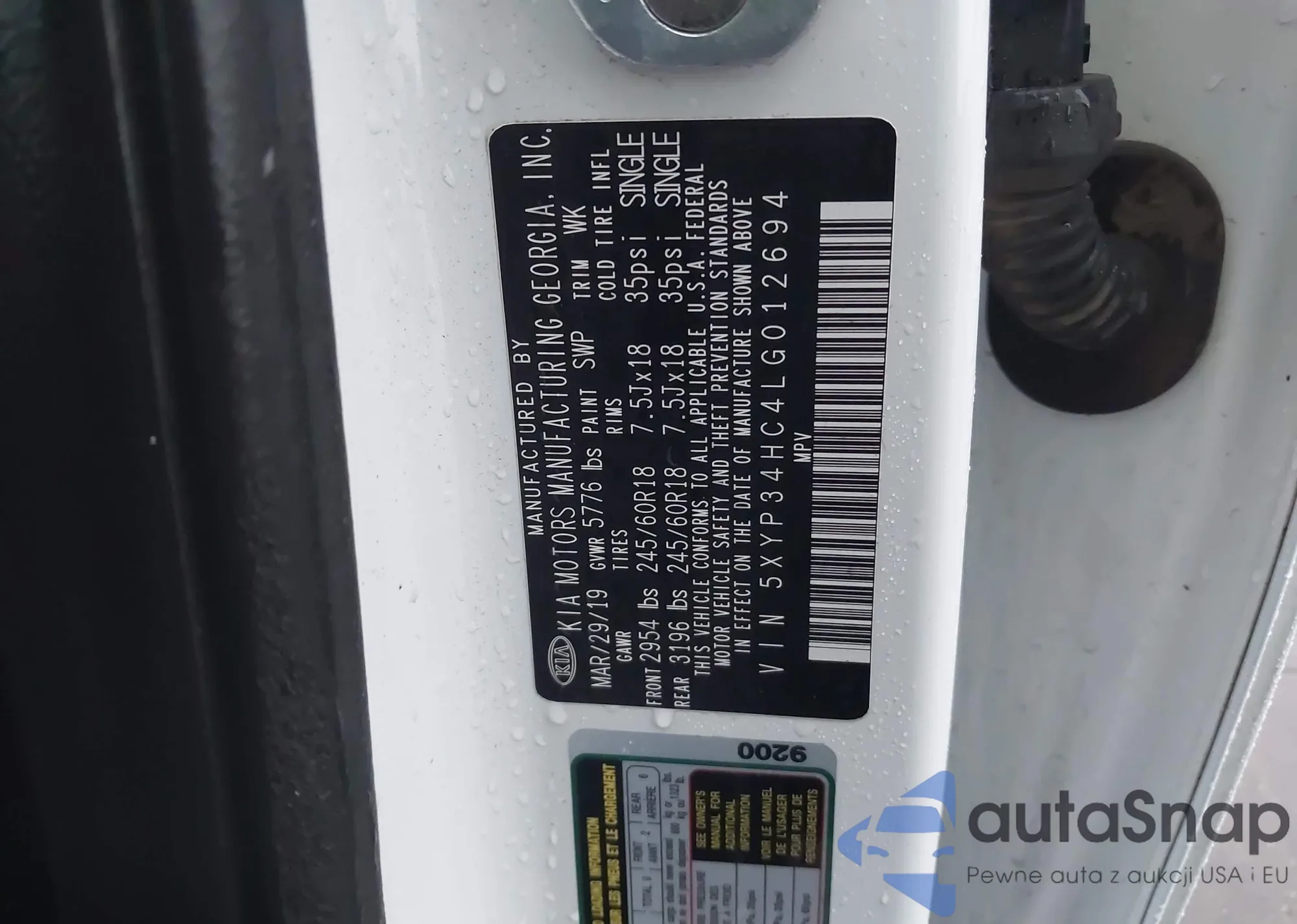 • VIN: 5XYP34HC4LG012694