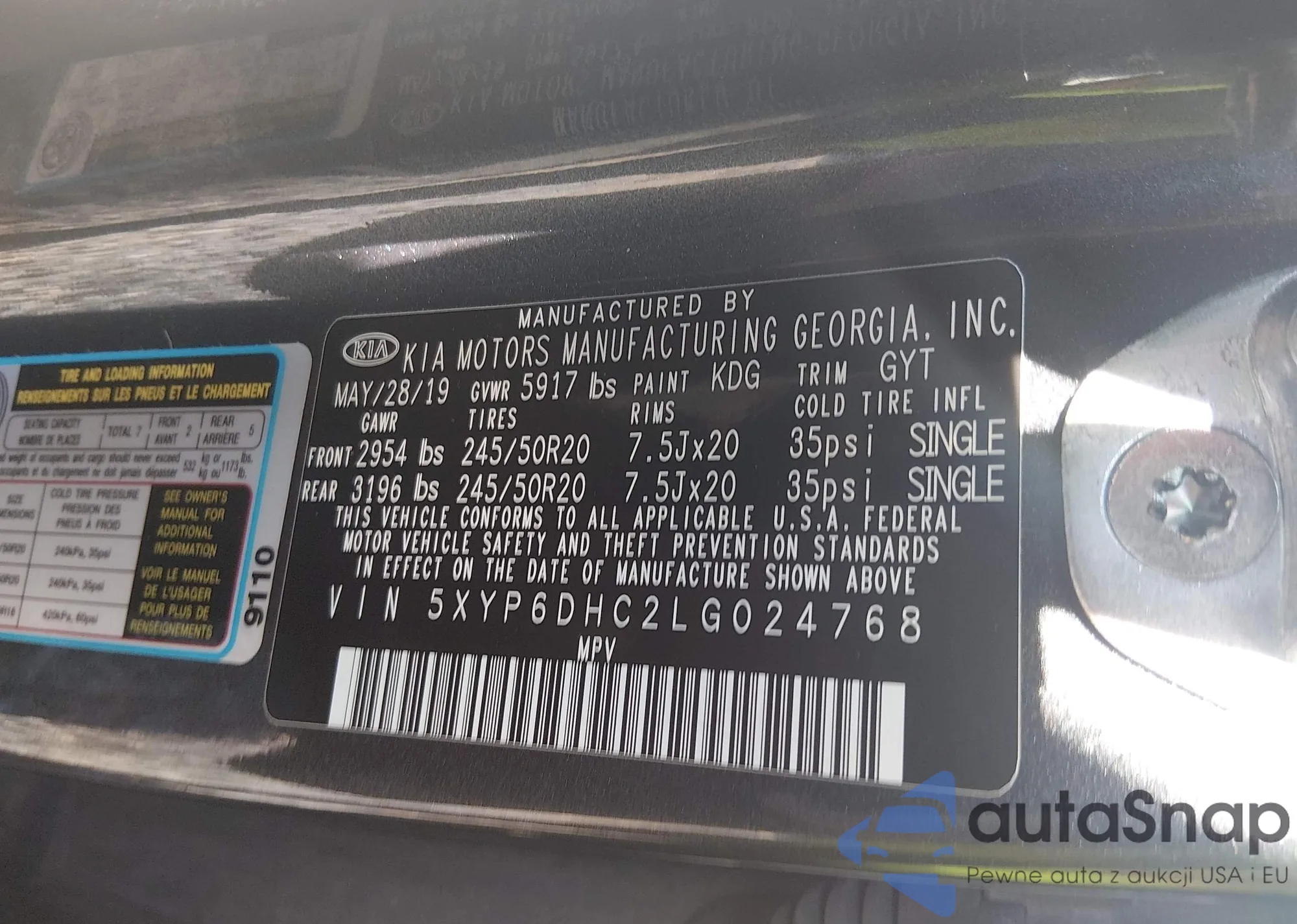 Samochód Kia Telluride 2020 (VIN 5XYP6DHC2LG024768) nie był wcześniej licytowany. Dokumenty są czyste, przebieg odpowiada lub jest niższy niż średnia rynku. Sprzedaje go firma ubezpieczeniowa – polecamy zakup. Dostawa do portu zajmie ok. 6–8 tygodni.