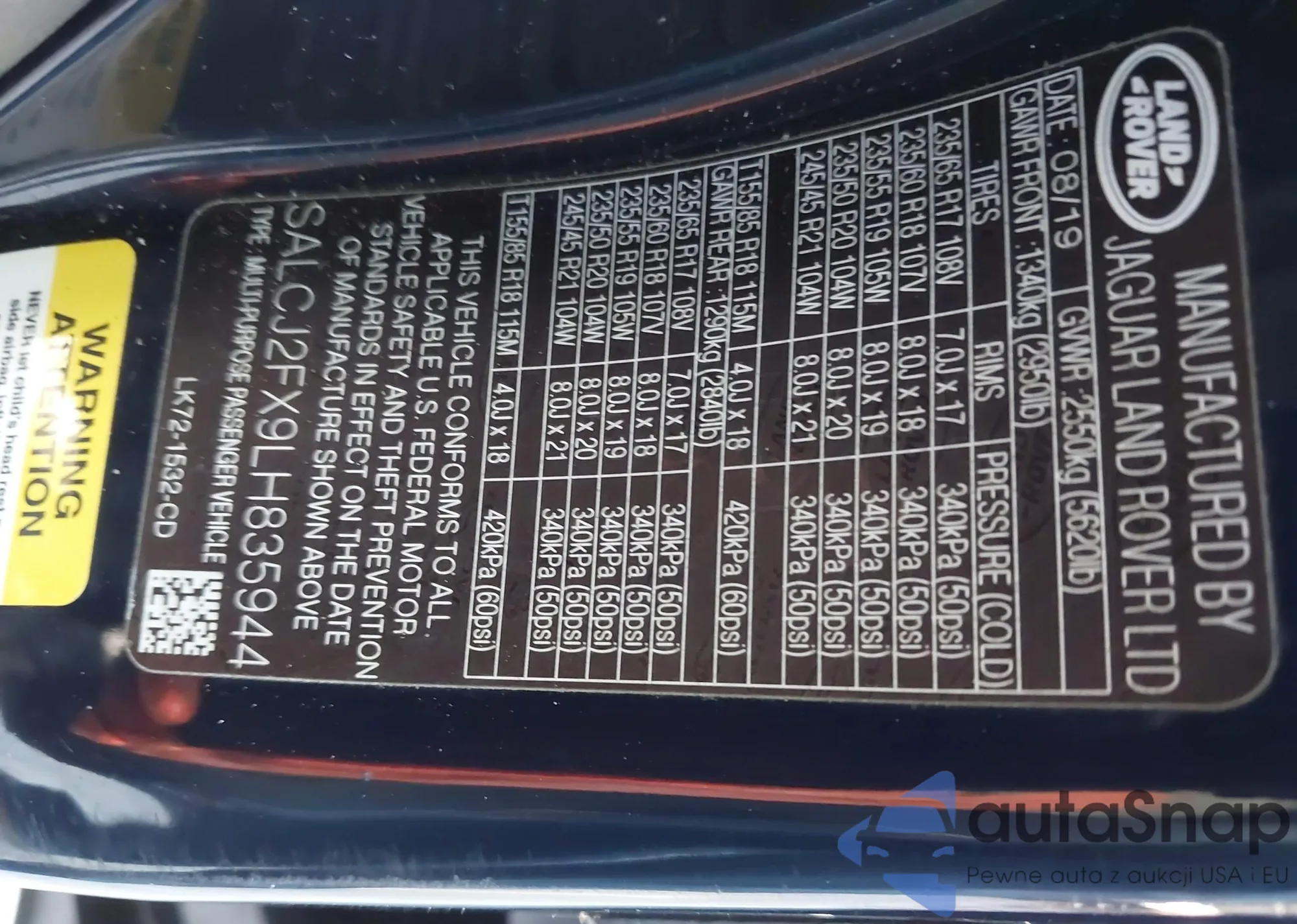 Samochód Land Rover Discovery Sport 2020 (VIN SALCJ2FX9LH835944) nie był wcześniej licytowany. Dokumenty są czyste, przebieg odpowiada lub jest niższy niż średnia rynku. Sprzedaje go firma ubezpieczeniowa – polecamy zakup. Dostawa do portu zajmie ok. 6–8 tygodni.