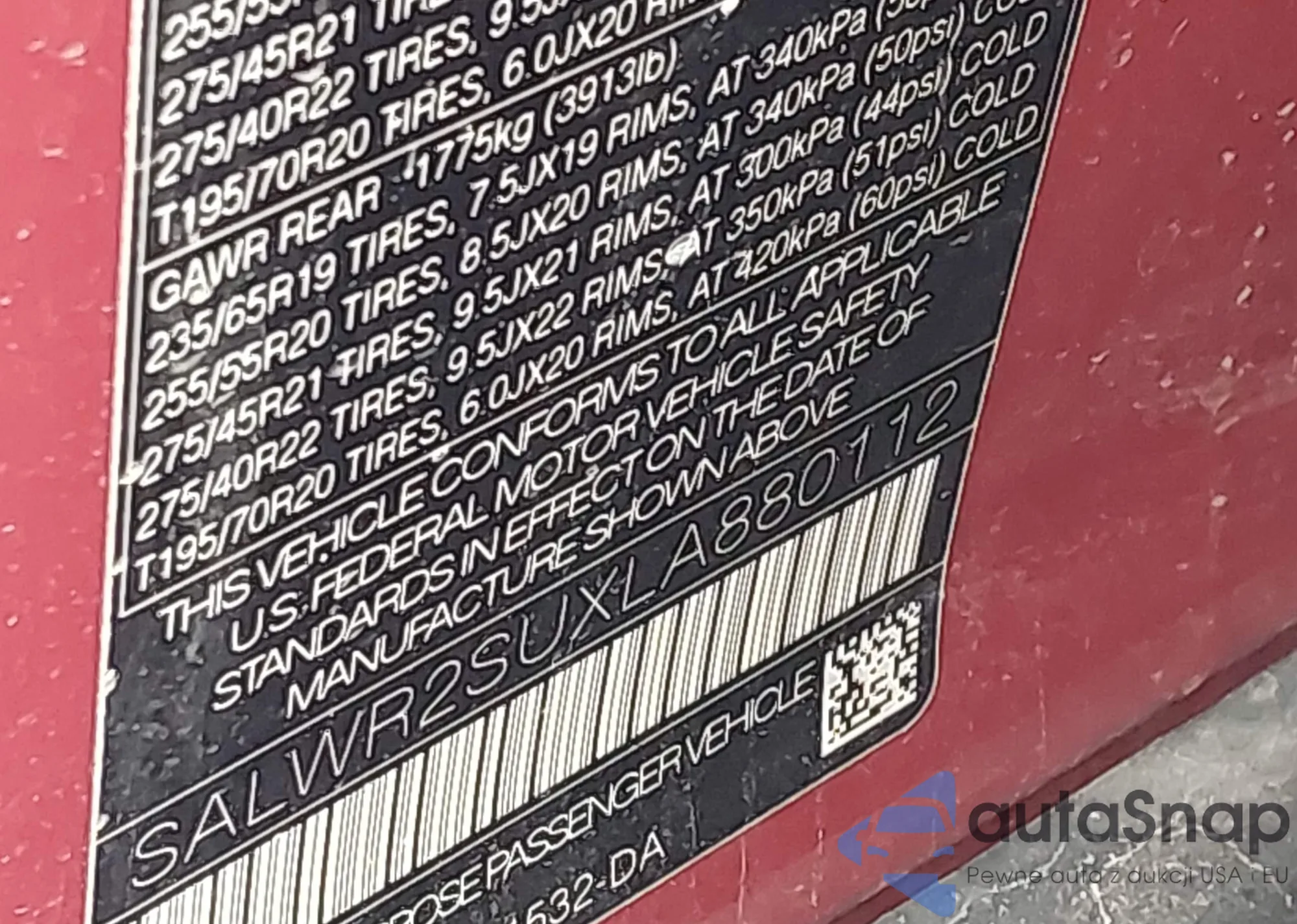 • VIN: SALWR2SUXLA880112
