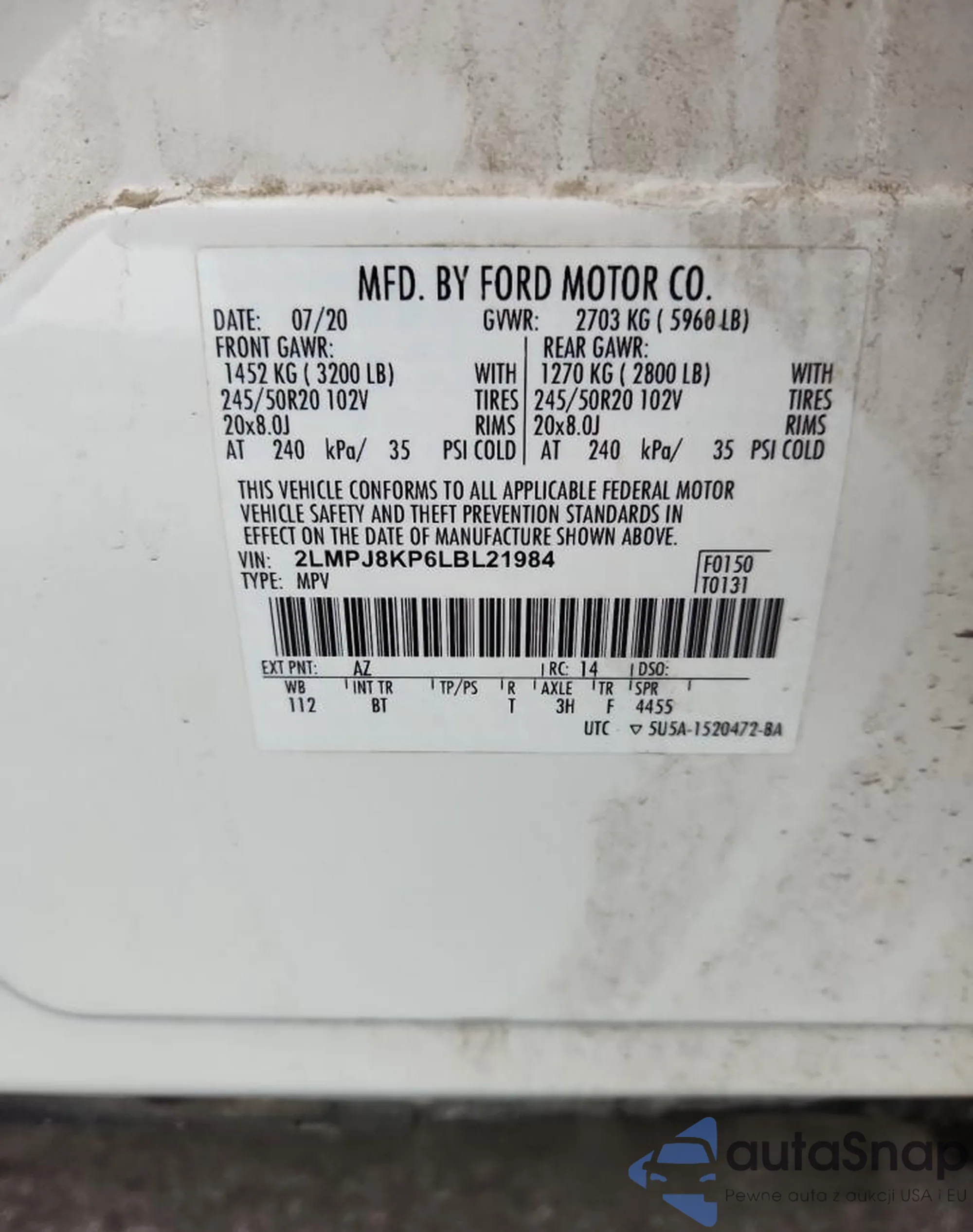 VIN: 2LMPJ8KP6LBL21984