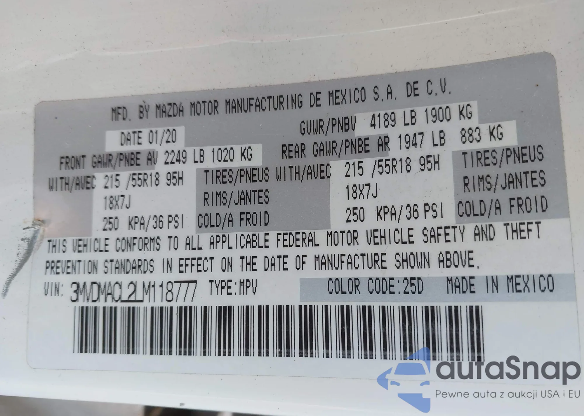 • VIN: 3MVDMACL2LM118777