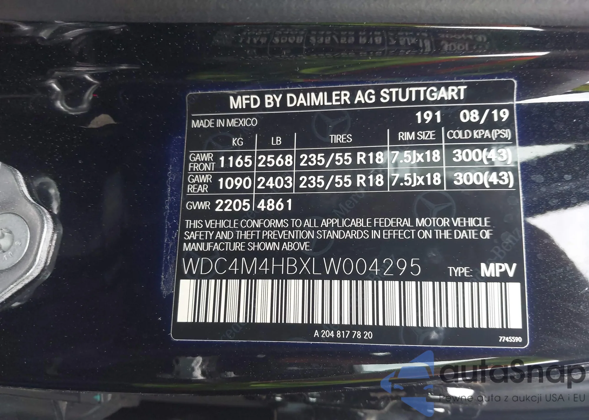VIN: WDC4M4HBXLW004295