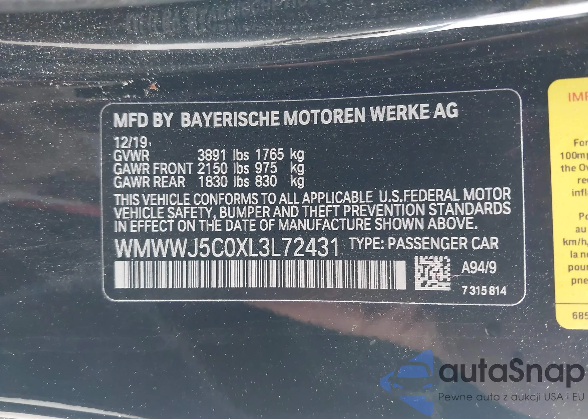 Samochód MINI Convertible 2020 (VIN WMWWJ5C0XL3L72431) ma dokumenty uniemożliwiające rejestrację. Mogą pojawić się trudności przy eksporcie i rejestracji. Skontaktuj się z ekspertami AutaSnap w celu znalezienia alternatywy.